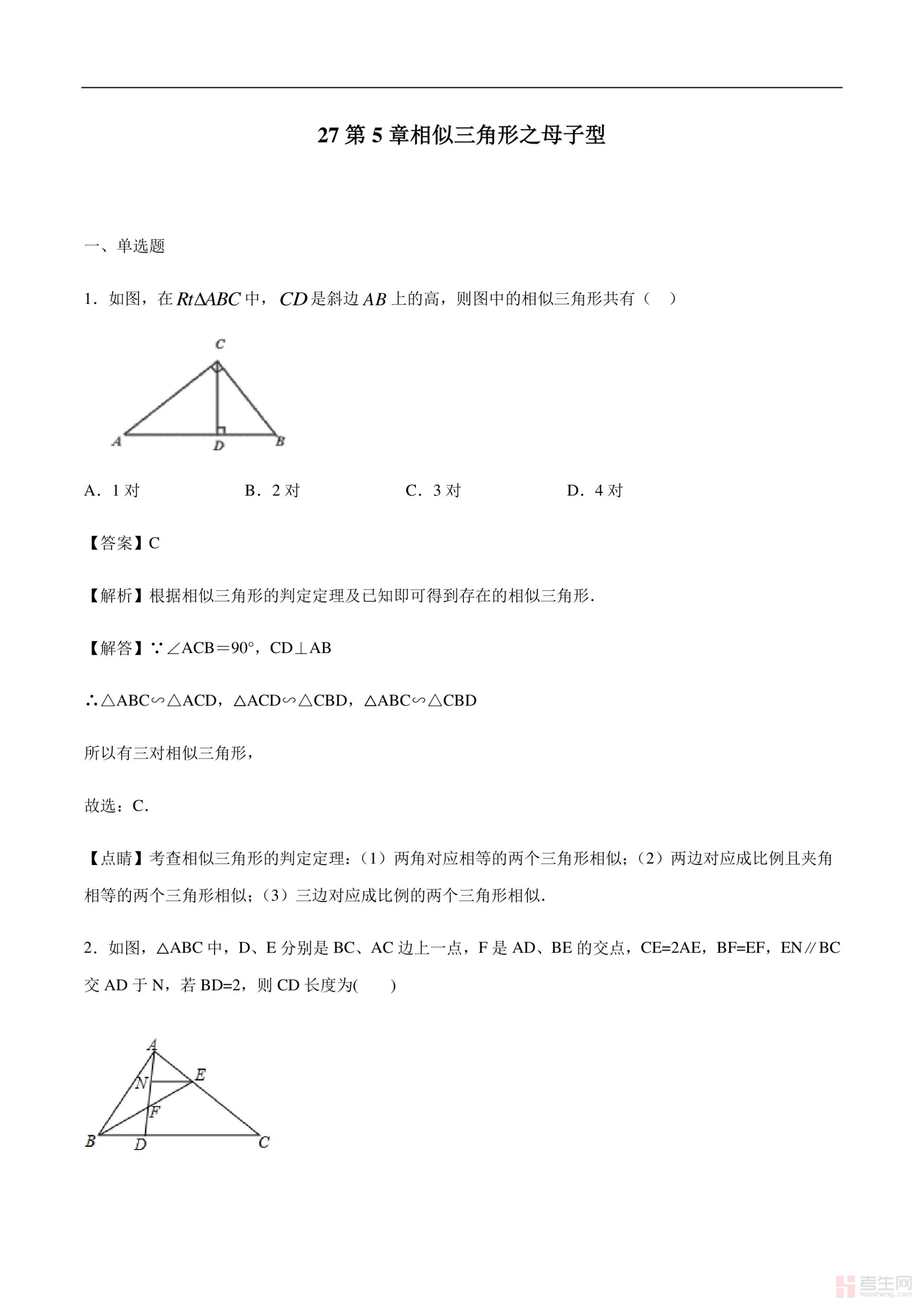 相似三角形之母子型-中考数学解题方法系统训练(全国通用)(解析版)