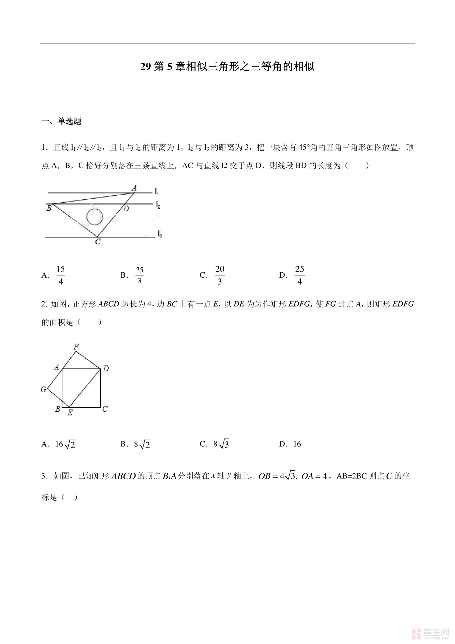相似三角形之三等角的相似-中考数学解题方法系统训练(全国通用)(原卷版)