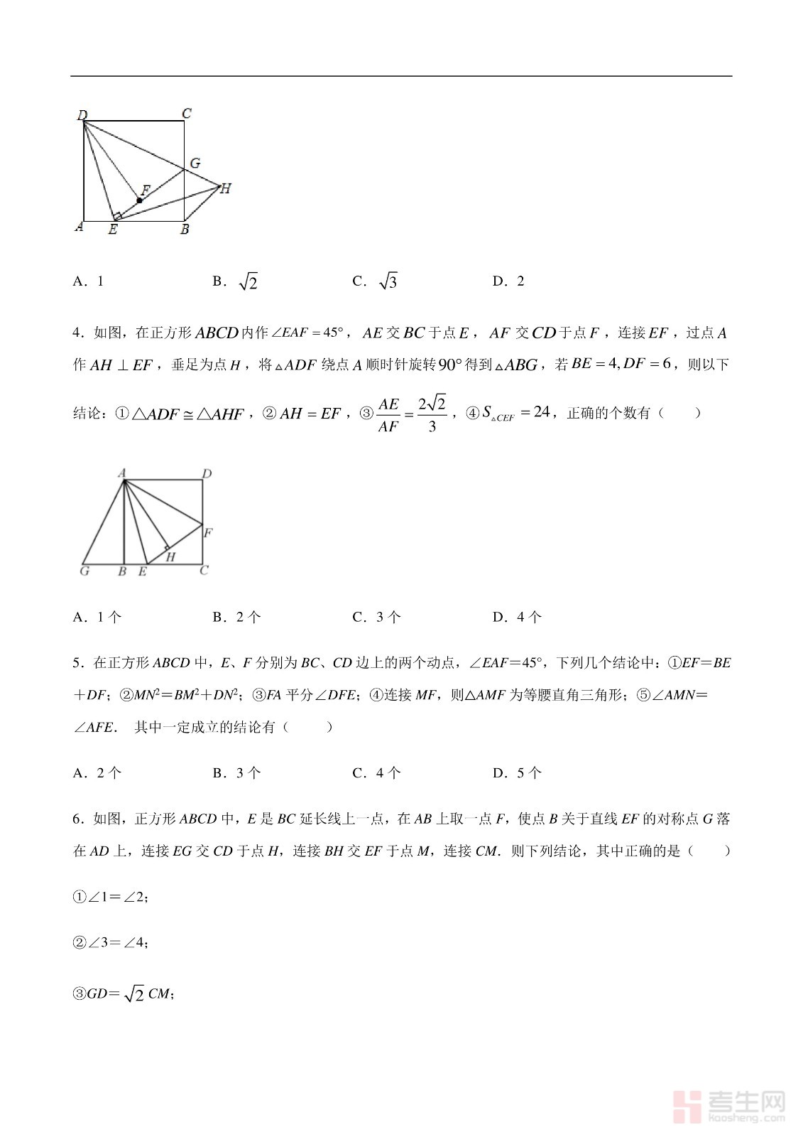 四边形之正方形与45度的基本图-中考数学解题方法系统训练(原卷版)
