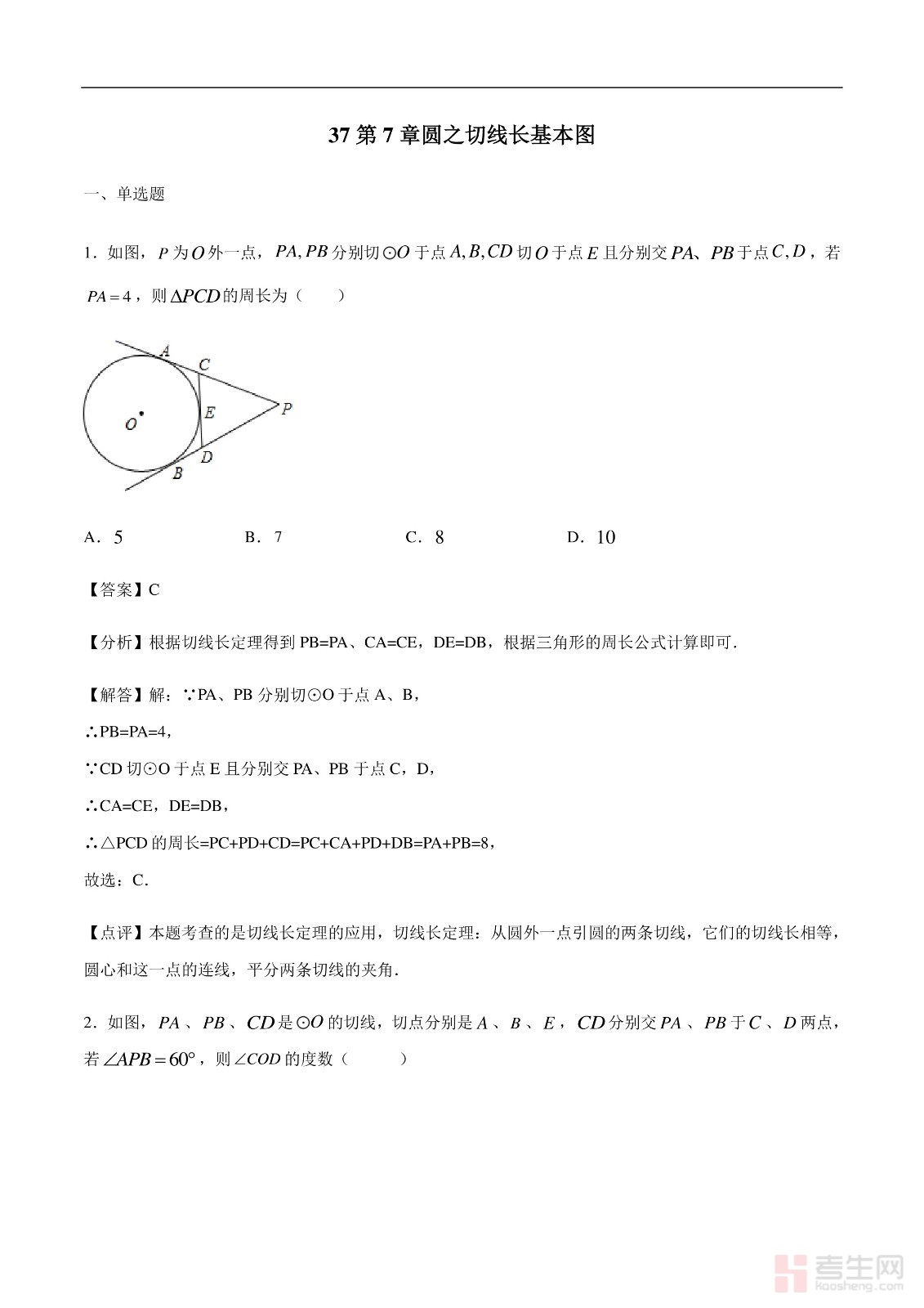 切线长是中考数学中的经典题型,掌握这一知识点,解题就不再难!今天为大家带来的是解析版资料,详细解析圆的切线长基本图,帮助你掌握解题思路和技巧,轻松应对中考!