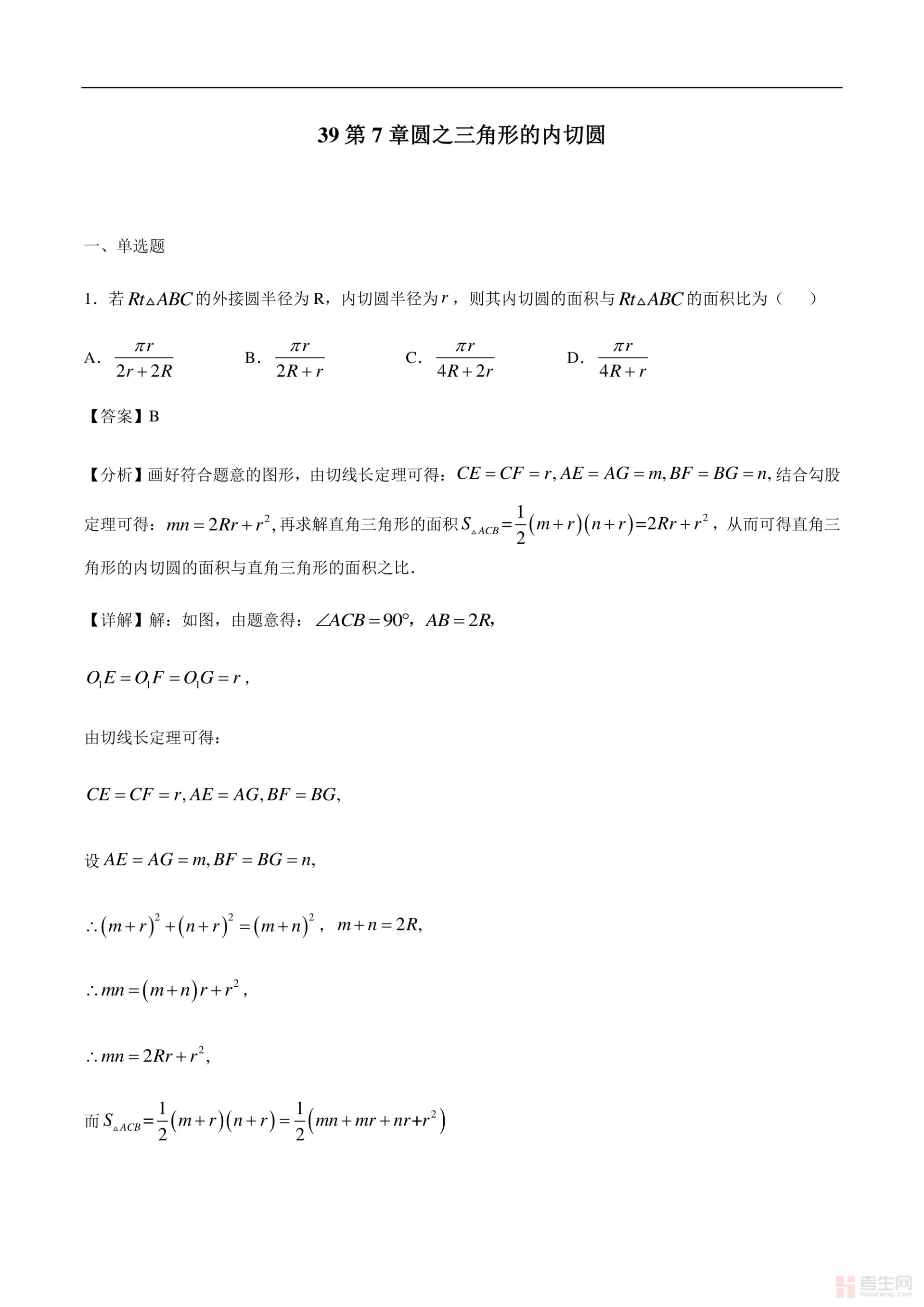 三角形的内切圆是中考数学中的重难点,掌握这一知识将帮助你在考试中轻松拿分!今天为大家带来的解析版资料,将深入解析三角形的内切圆,帮助你理解解题思路和技巧,提升解题能力!