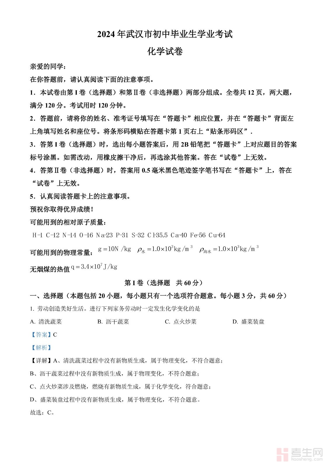 2024年湖北省武汉市中考真题(解析版)