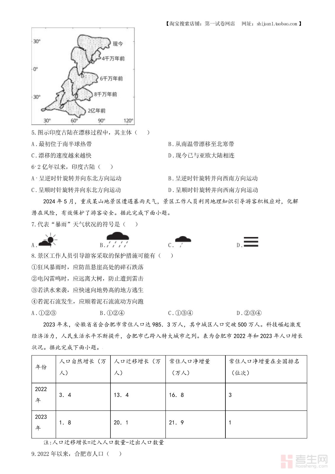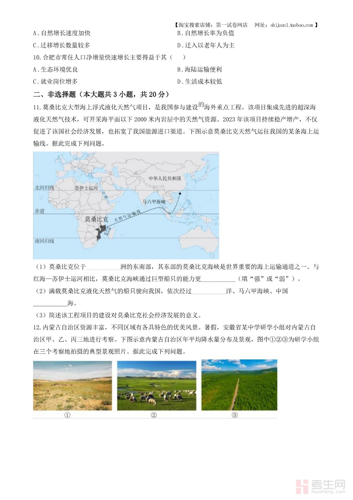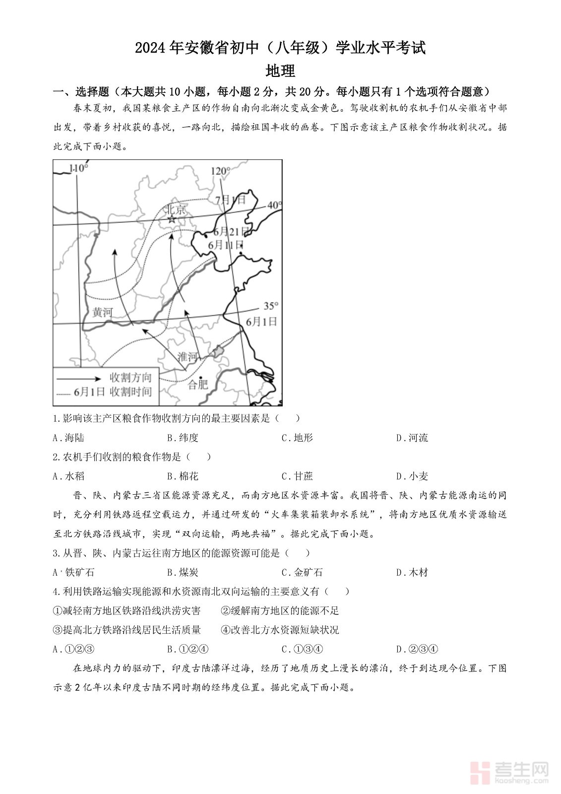 2024年安徽省中考地理真题(原卷版)
