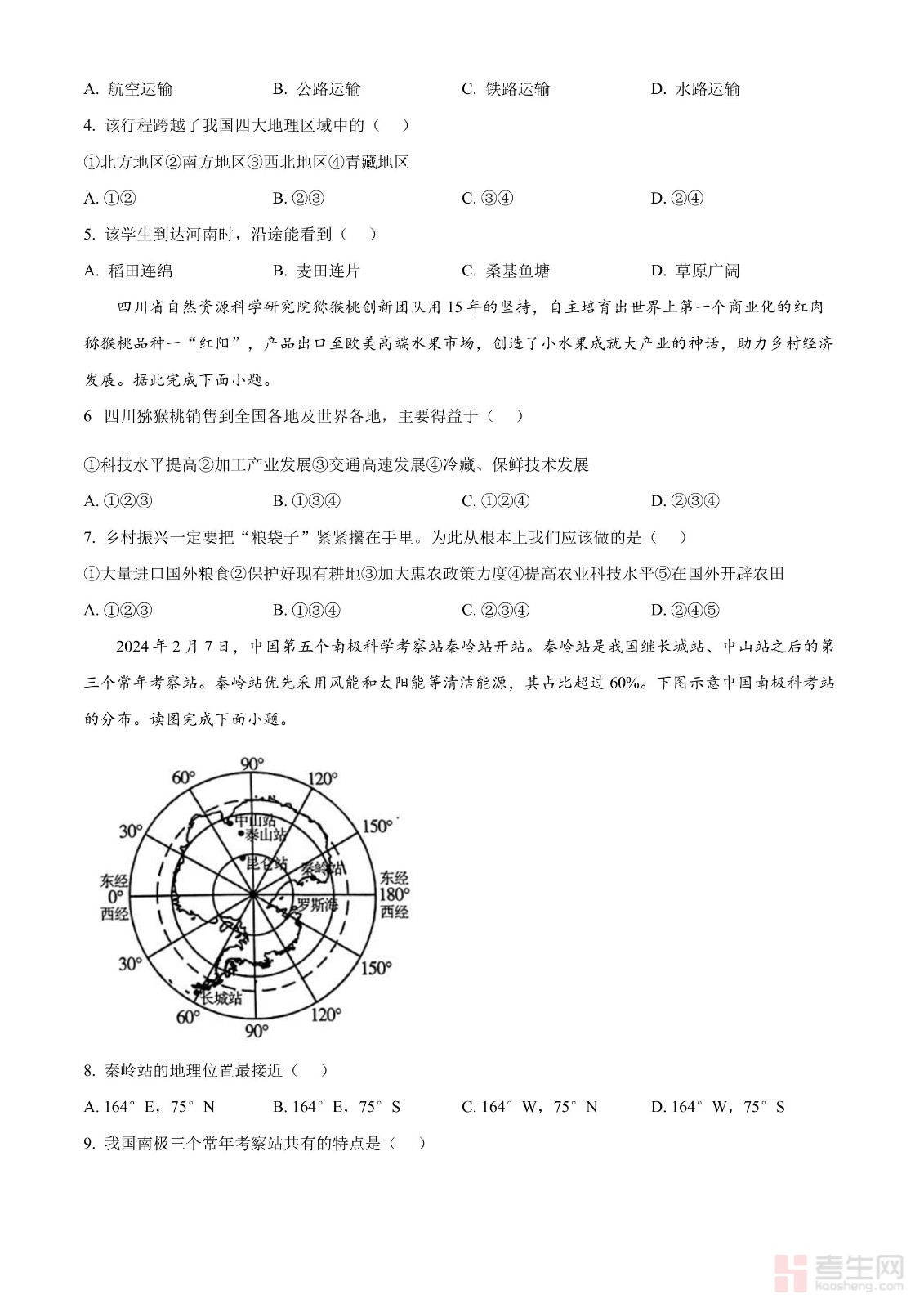 2024年甘肃省平凉市中考地理试题(原卷版)