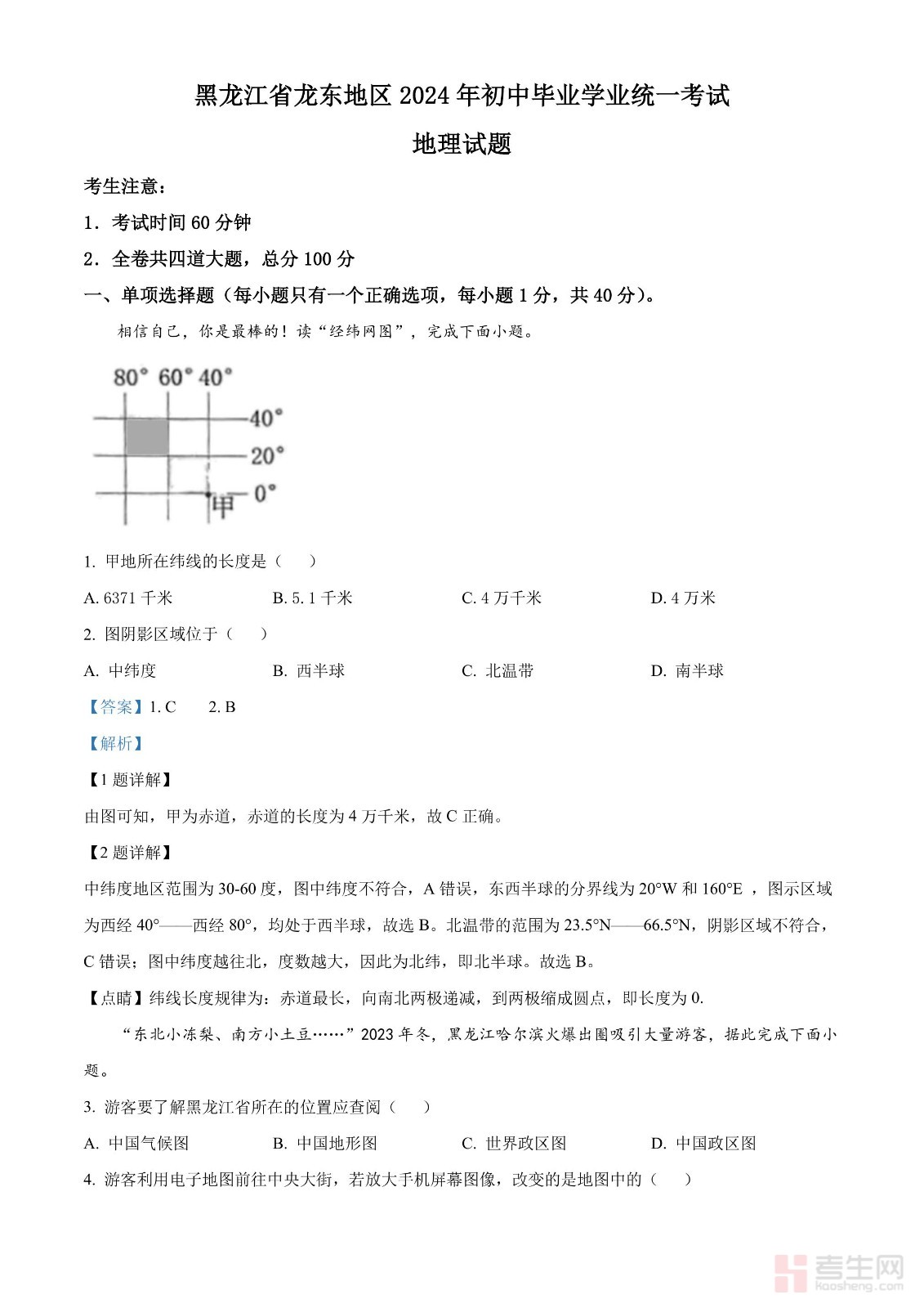 2024年黑龙江省龙东地区中考地理试题(解析版)