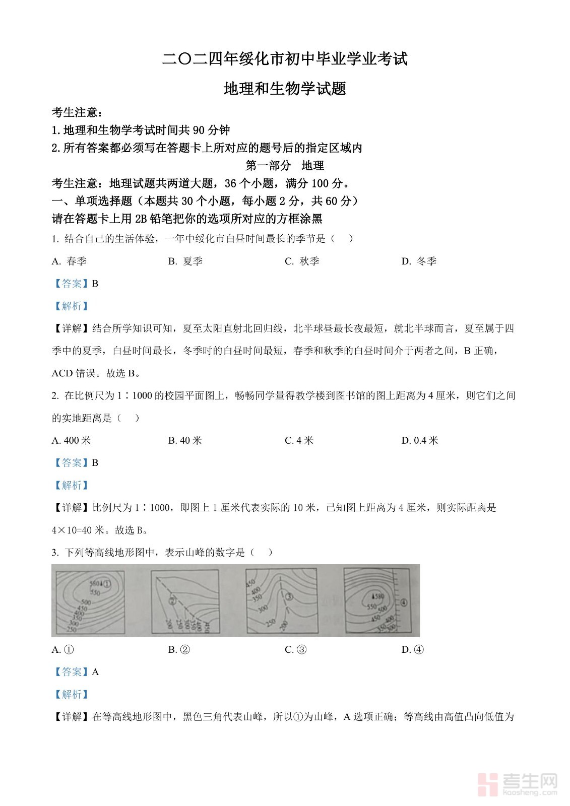 2024年黑龙江省绥化市中考地理试题(解析版)