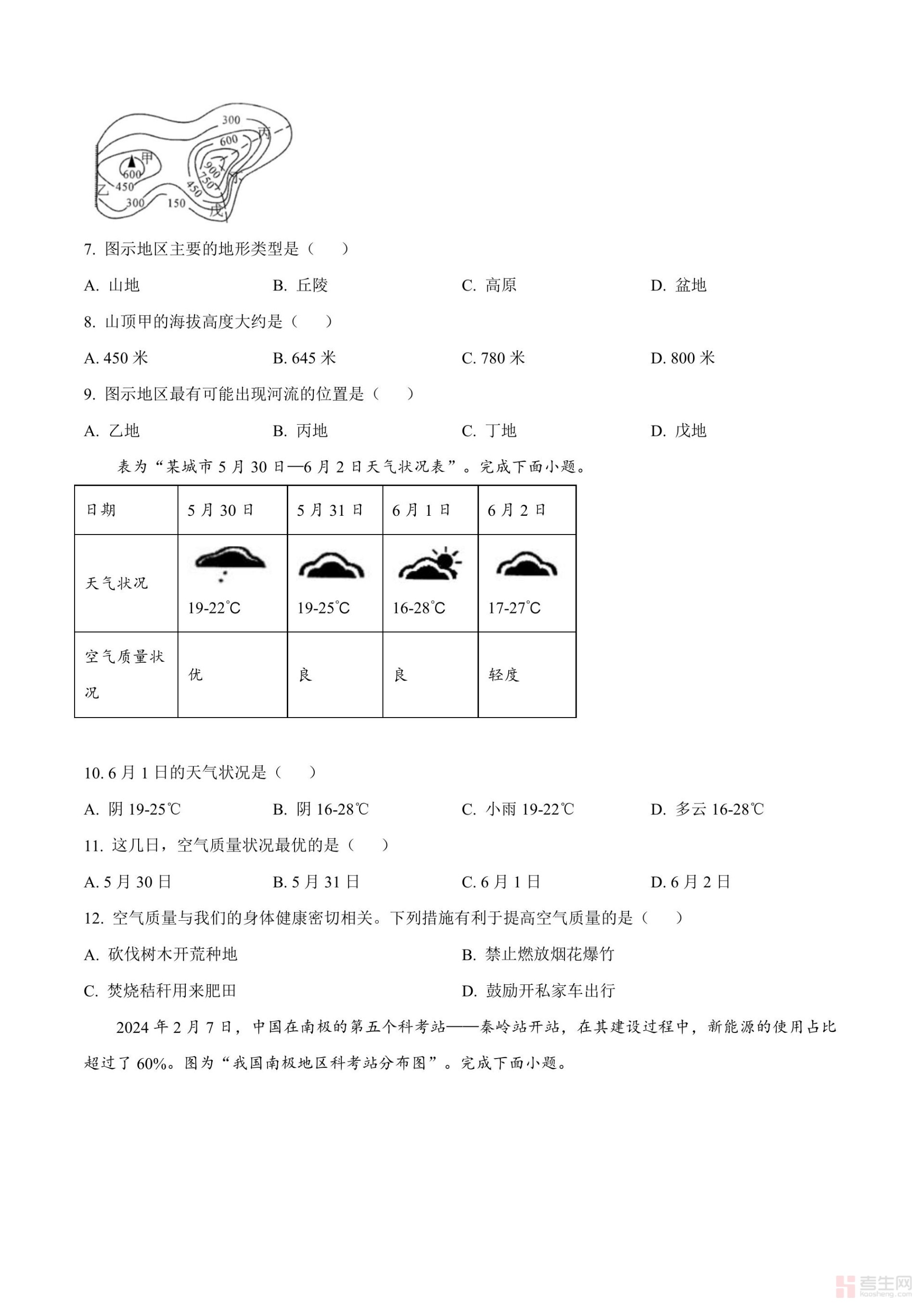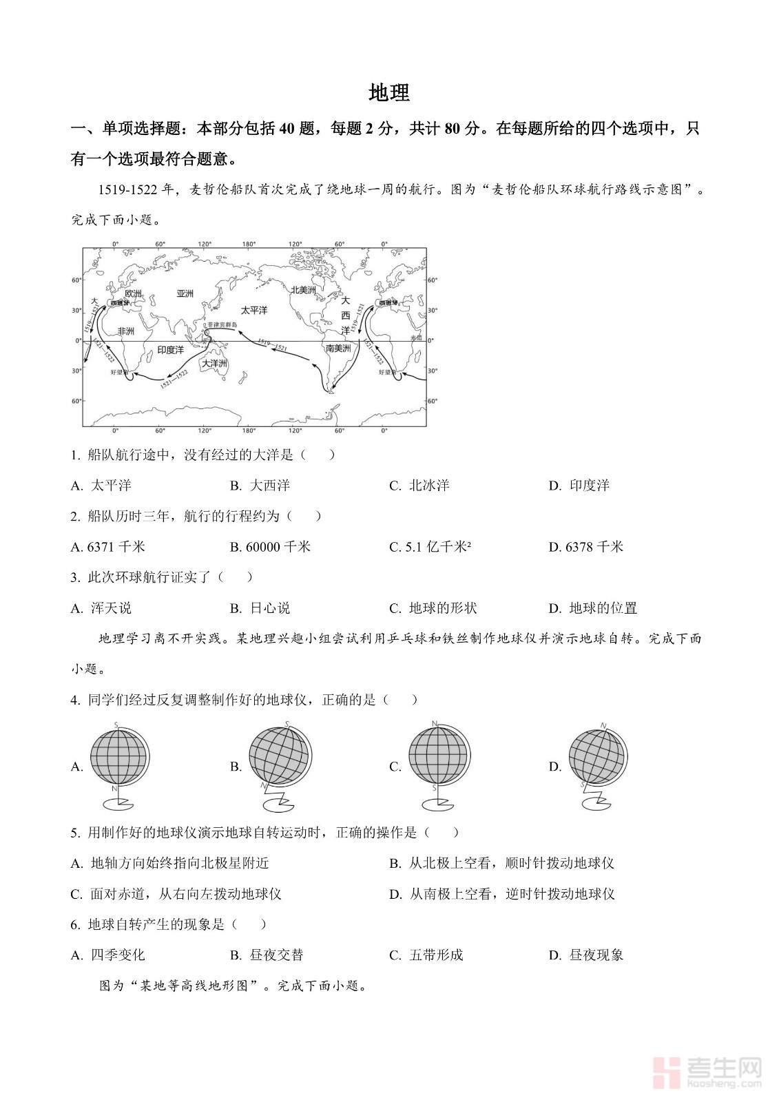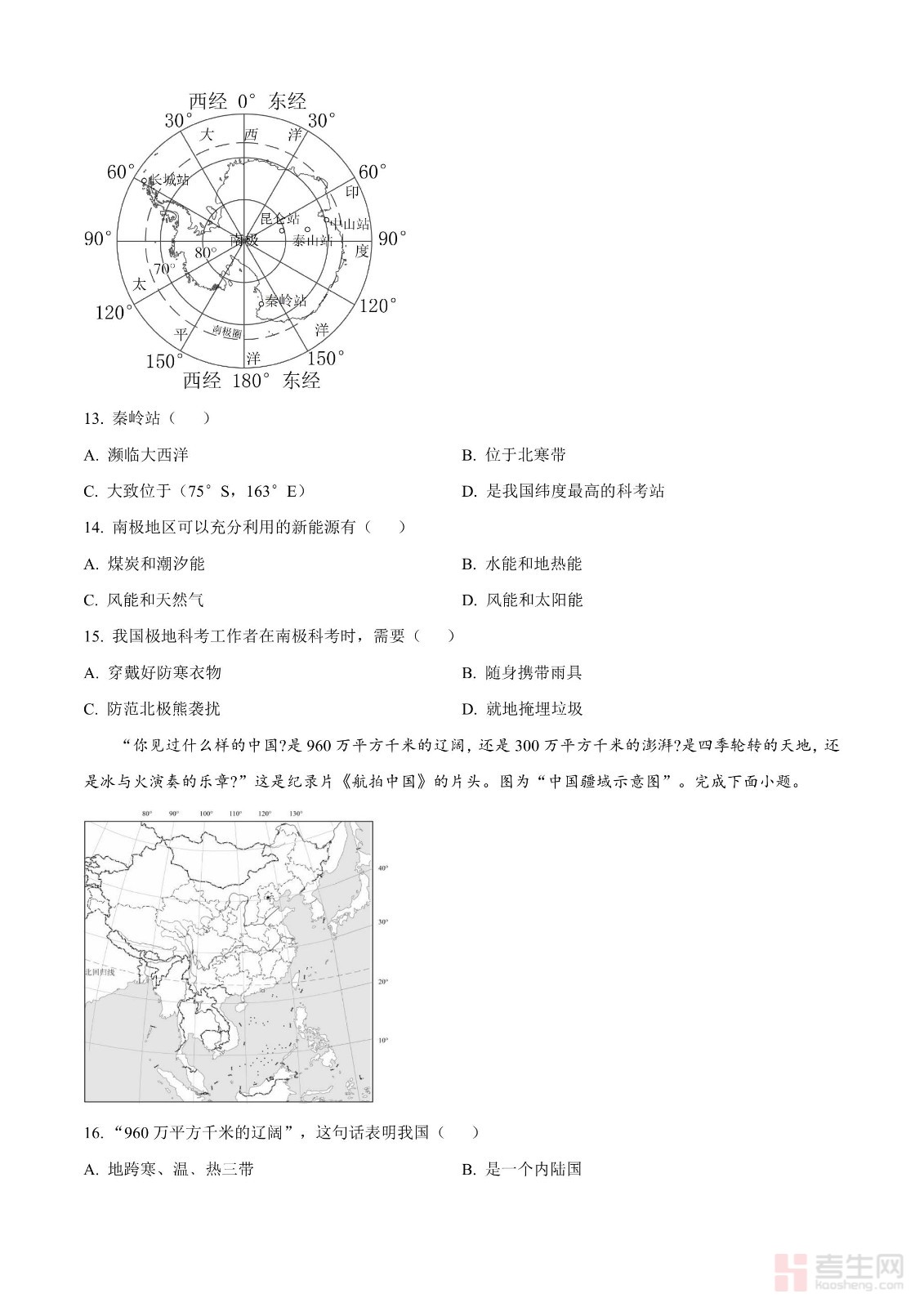 2024年江苏省宿迁市中考地理试题(原卷版)