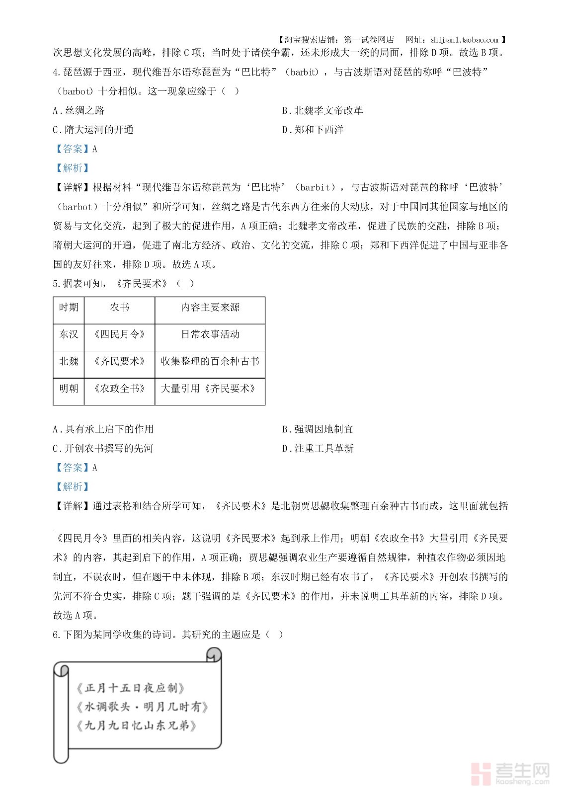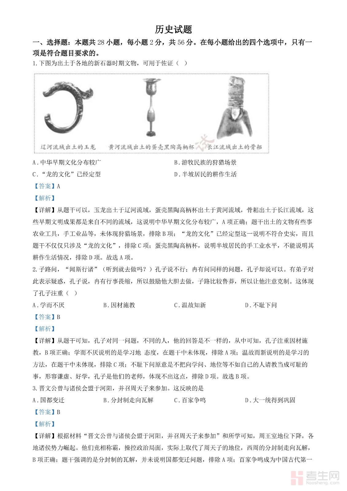 2024年贵州省黔东南州中考历史真题(原卷版)