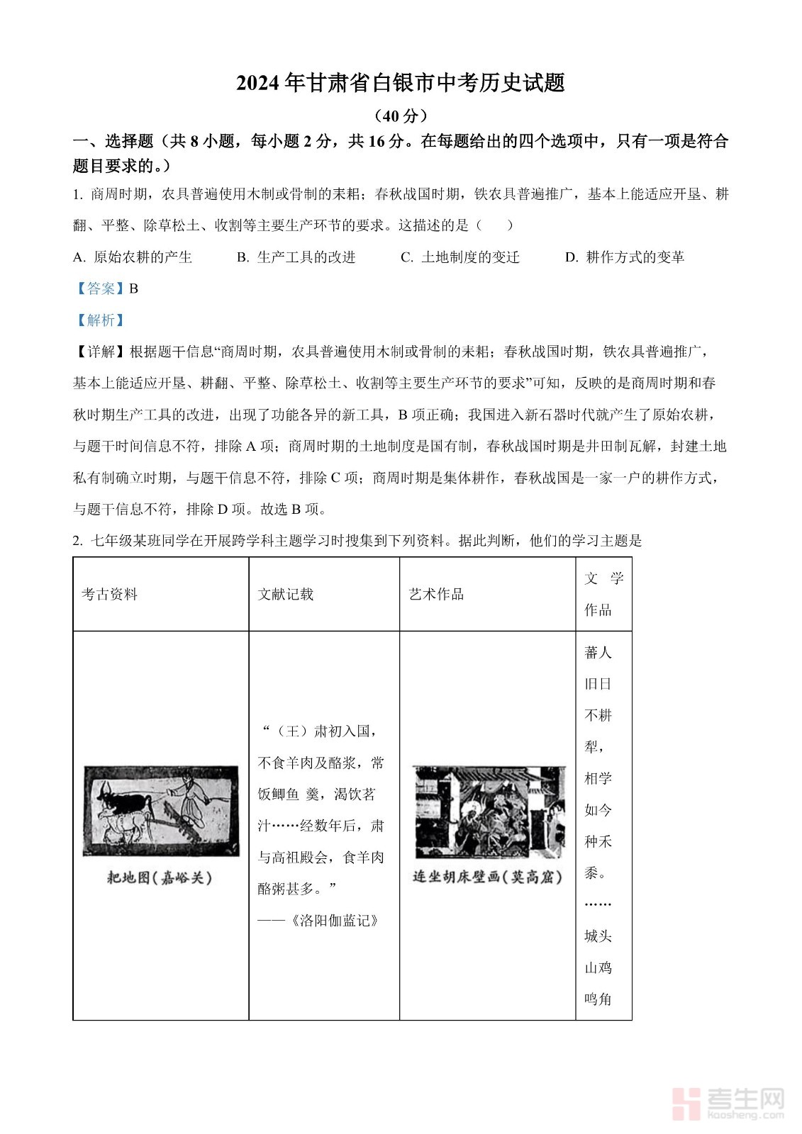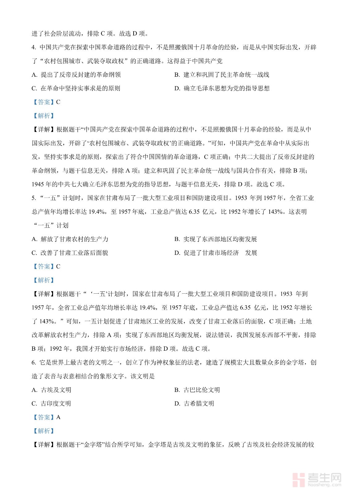 2024年贵州省黔东南州中考历史真题(原卷版)