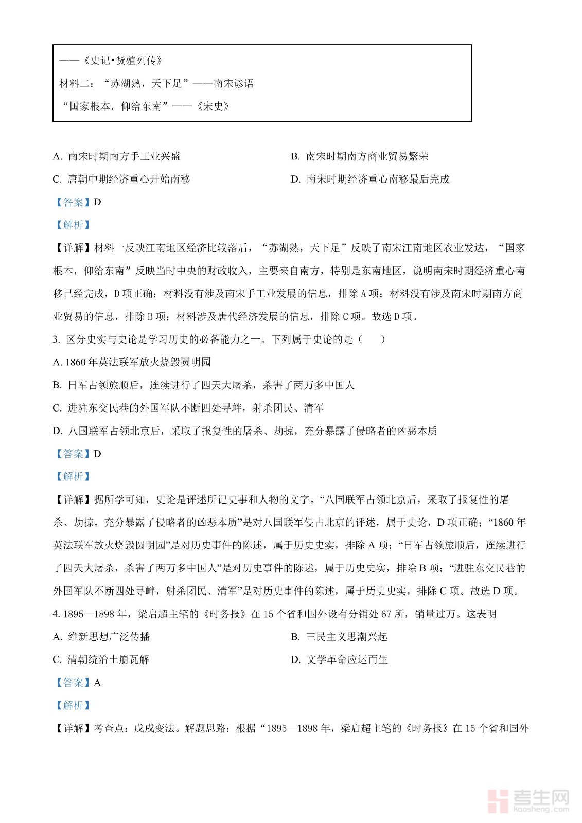 2024年广东省中考历史真题(解析版)