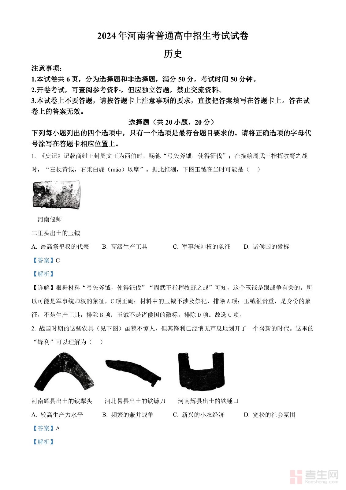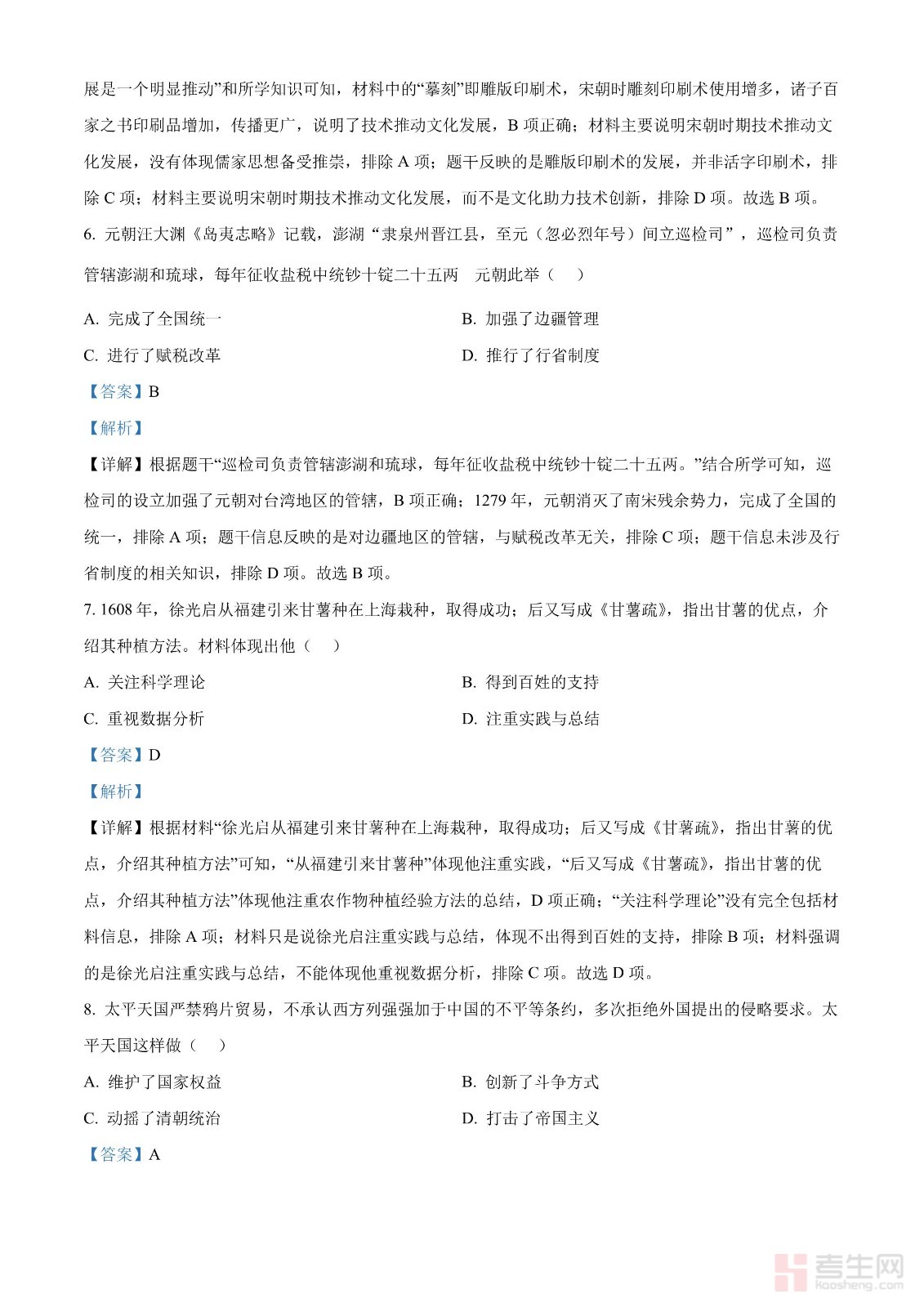 2024年贵州省黔东南州中考历史真题(原卷版)