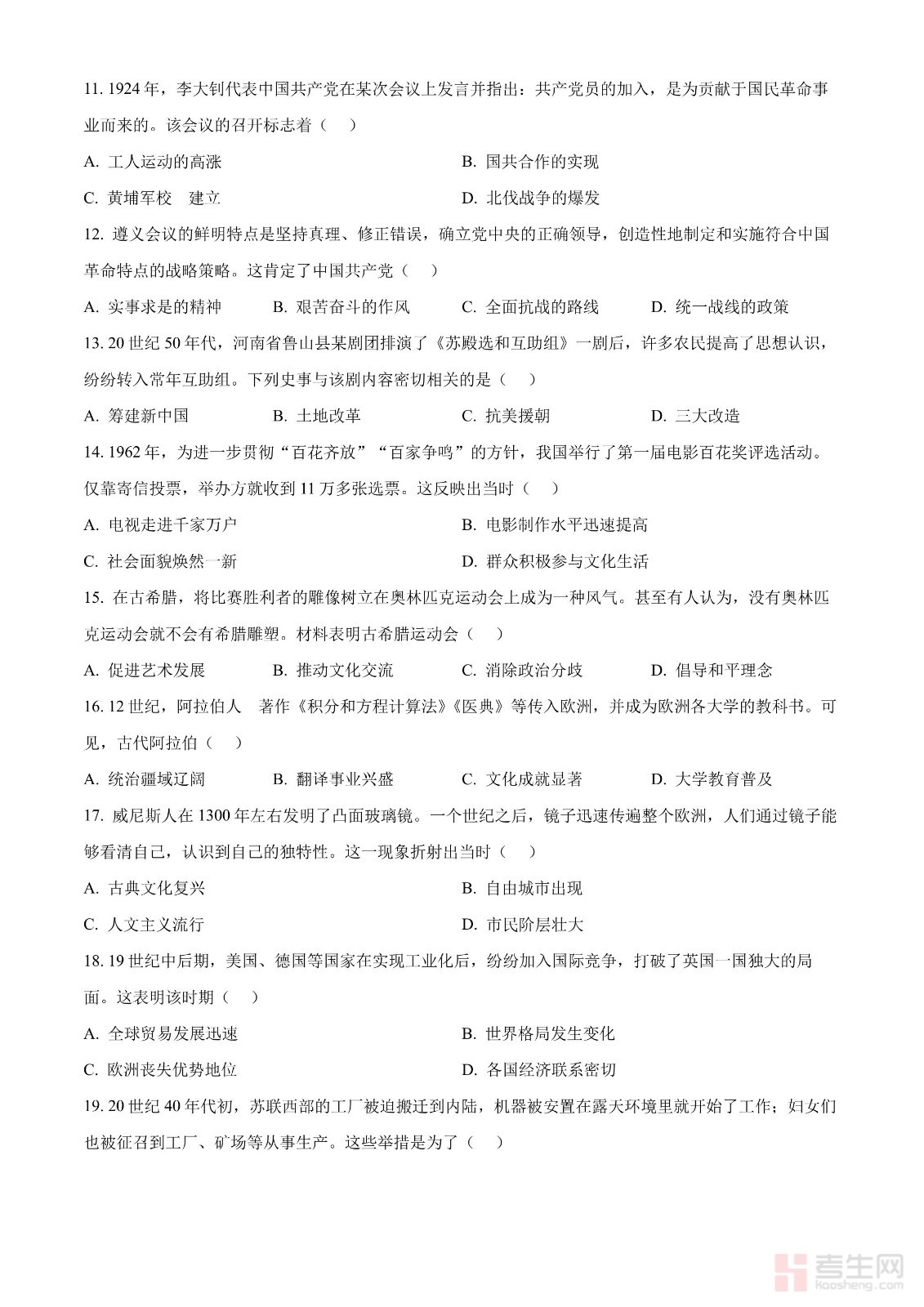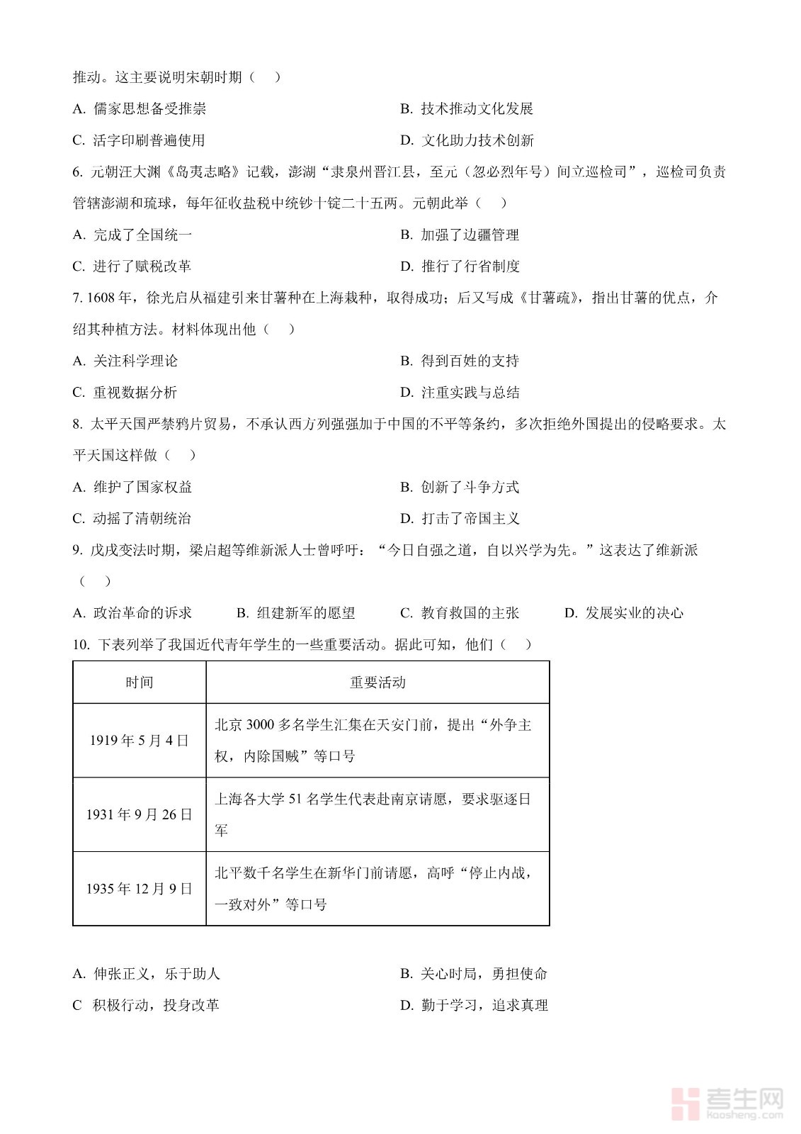 2024年中考历史真题