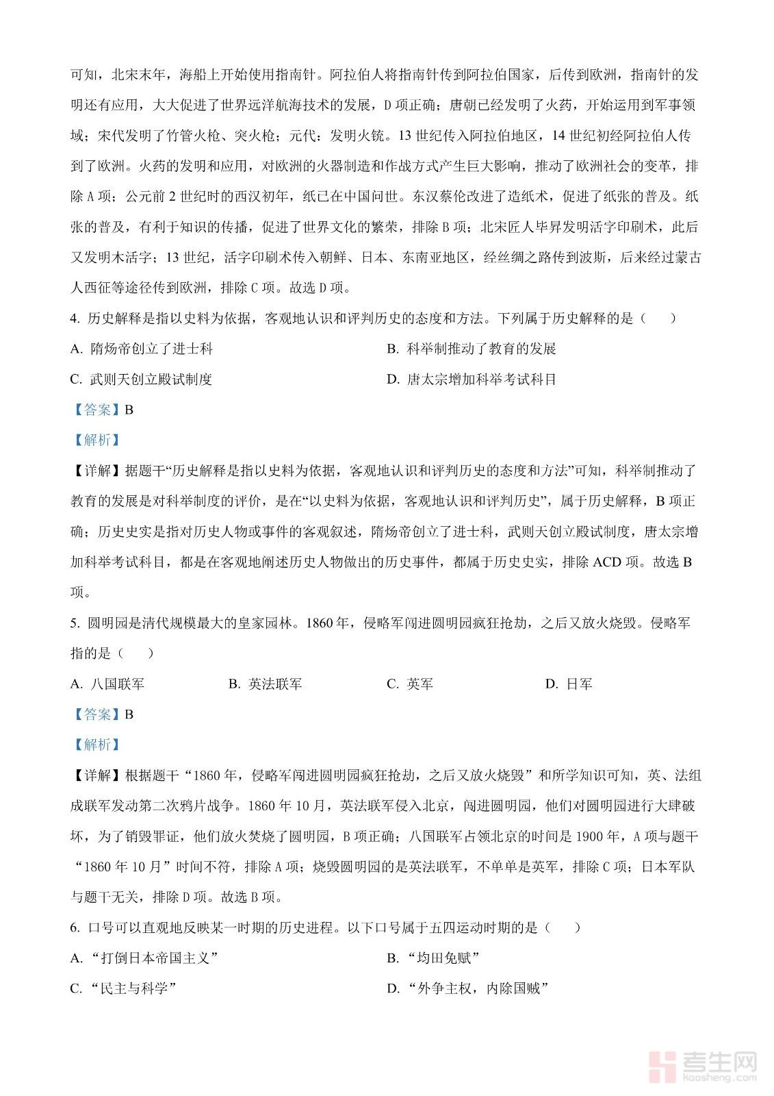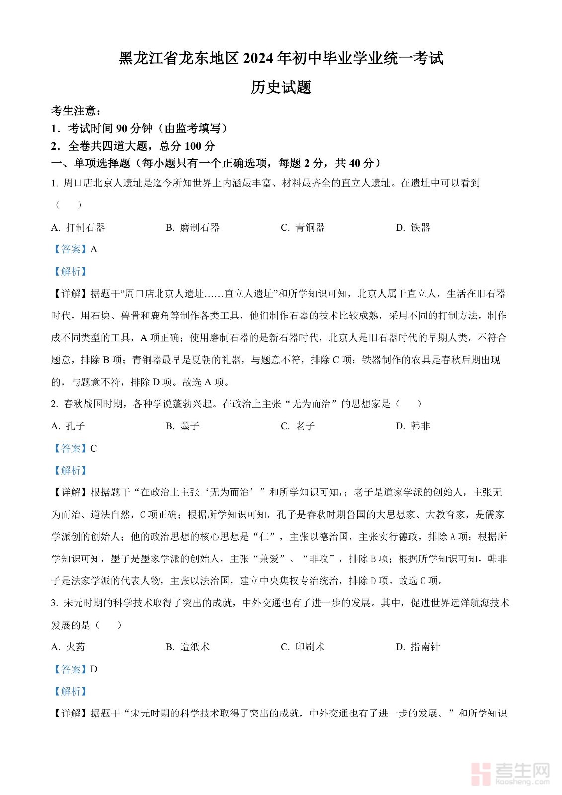 2024年黑龙江省龙东地区中考历史真题(解析版)