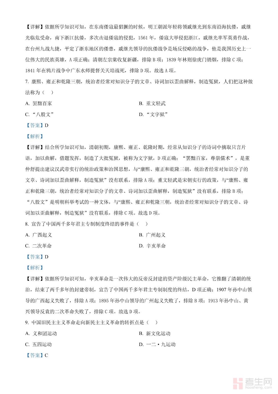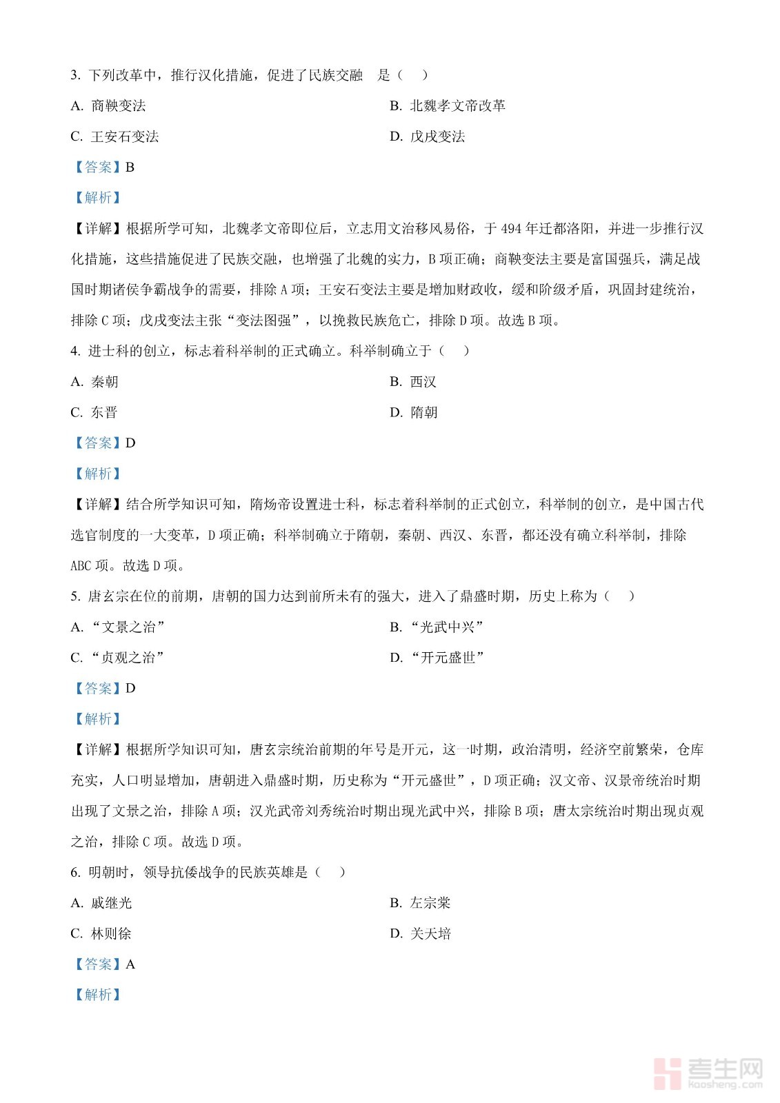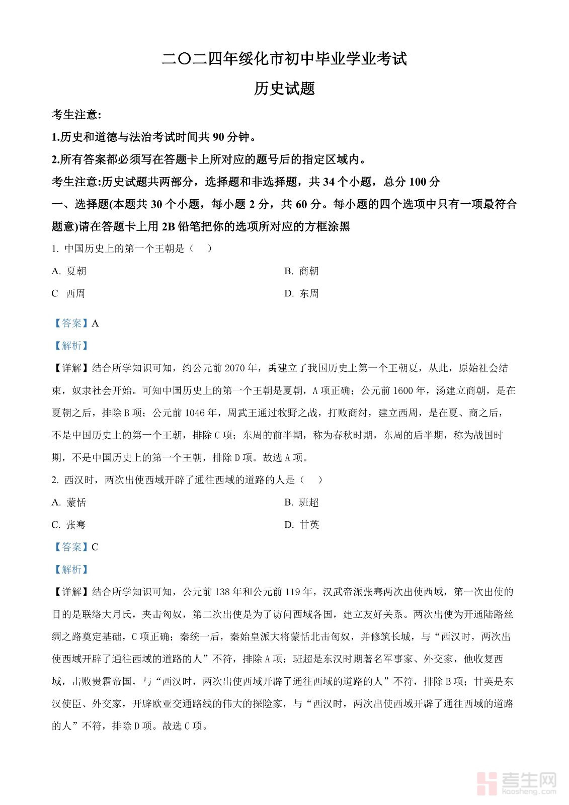 2024年黑龙江省绥化市中考历史真题(解析版)