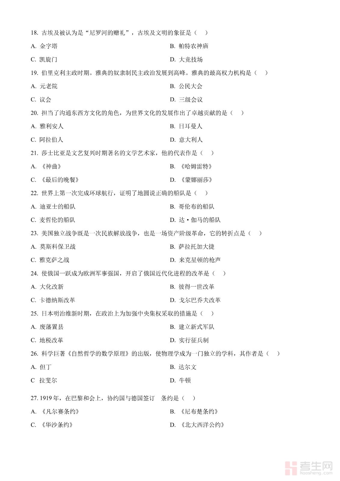 2024年贵州省黔东南州中考历史真题(原卷版)