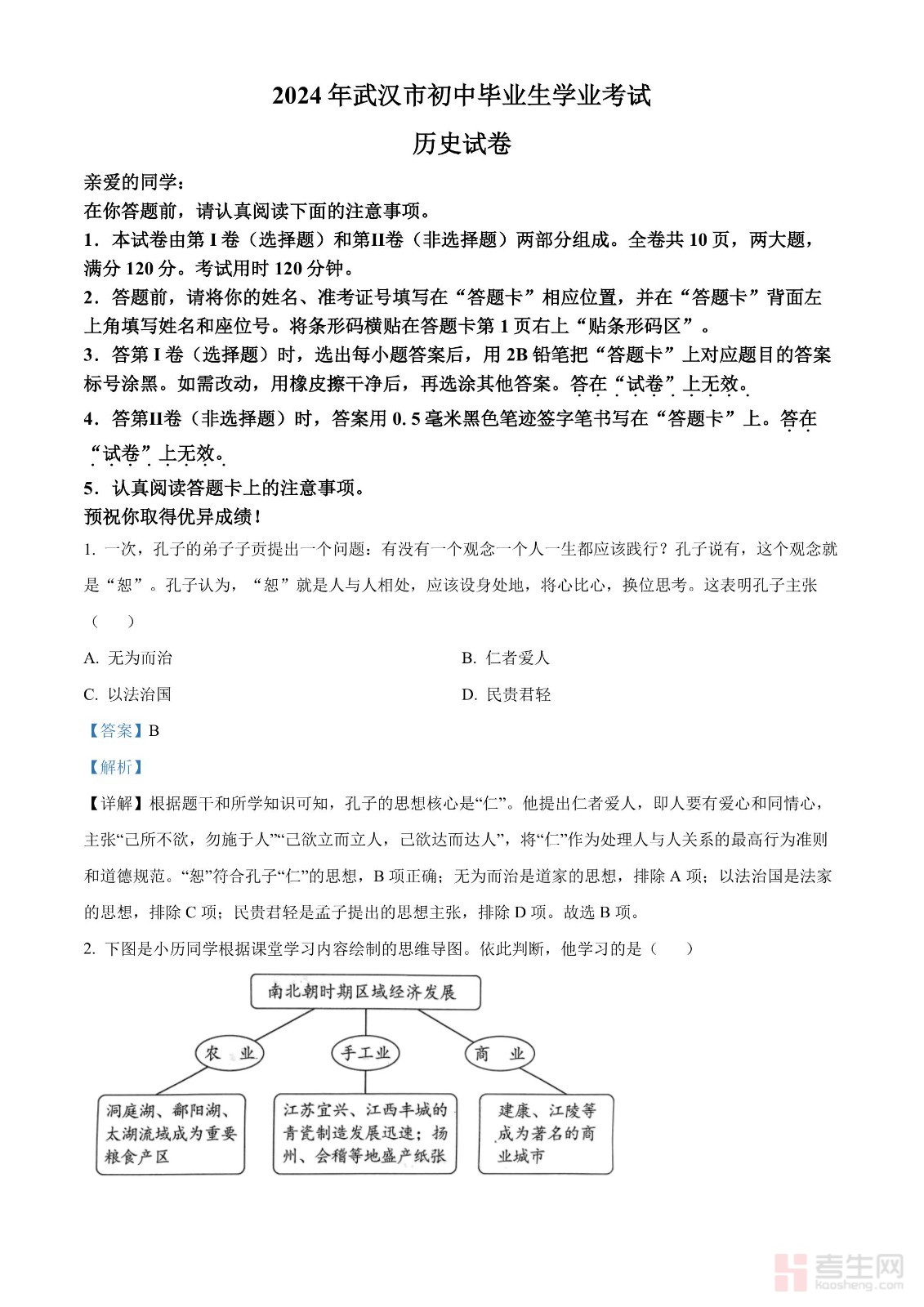 2024年贵州省黔东南州中考历史真题(原卷版)