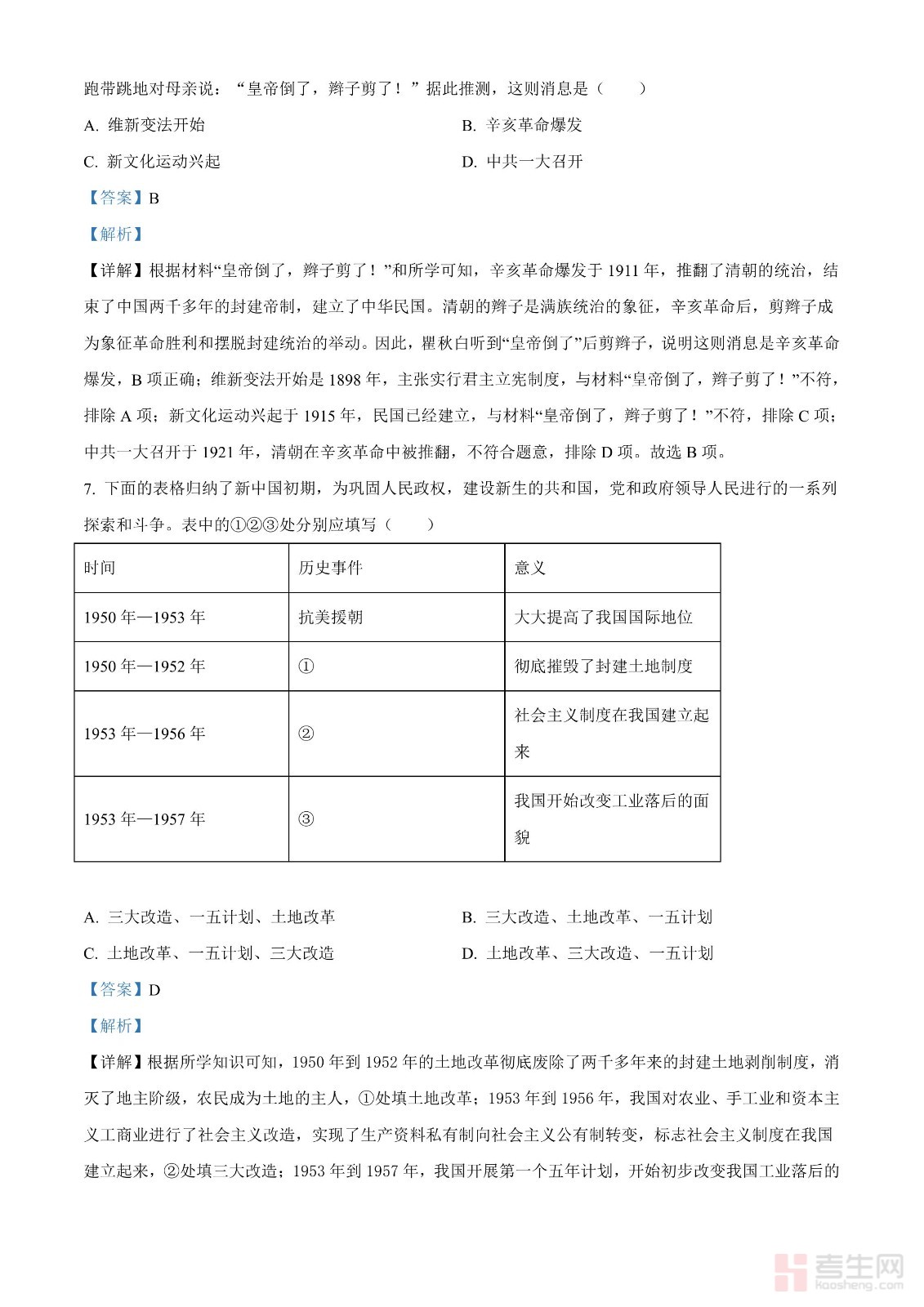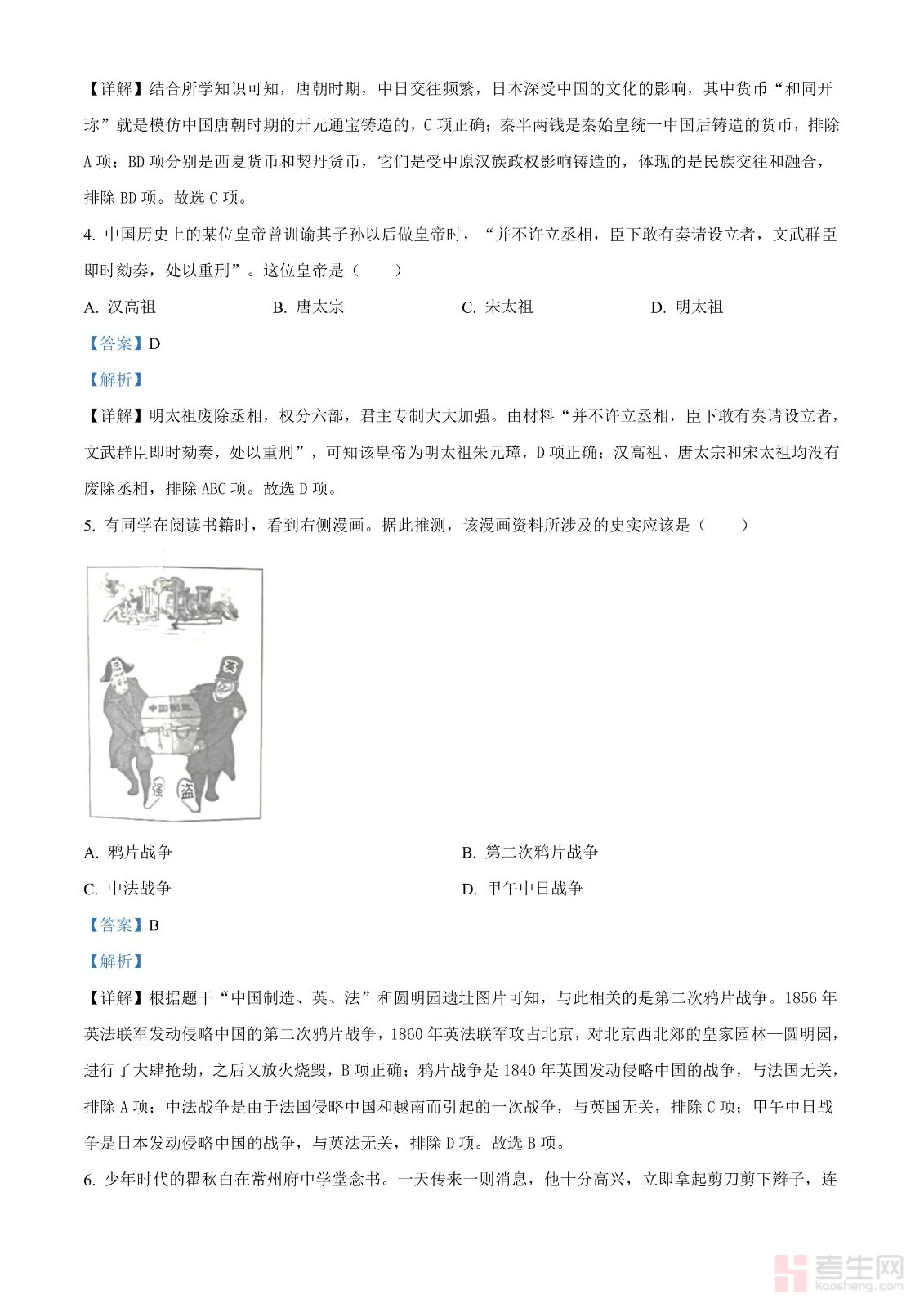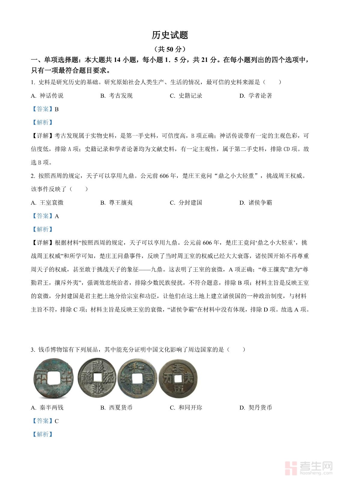 2024年贵州省黔东南州中考历史真题(原卷版)