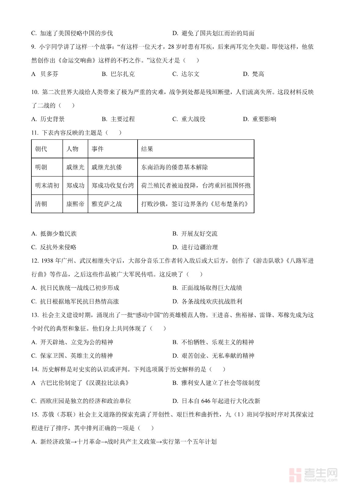 2024年中考历史真题