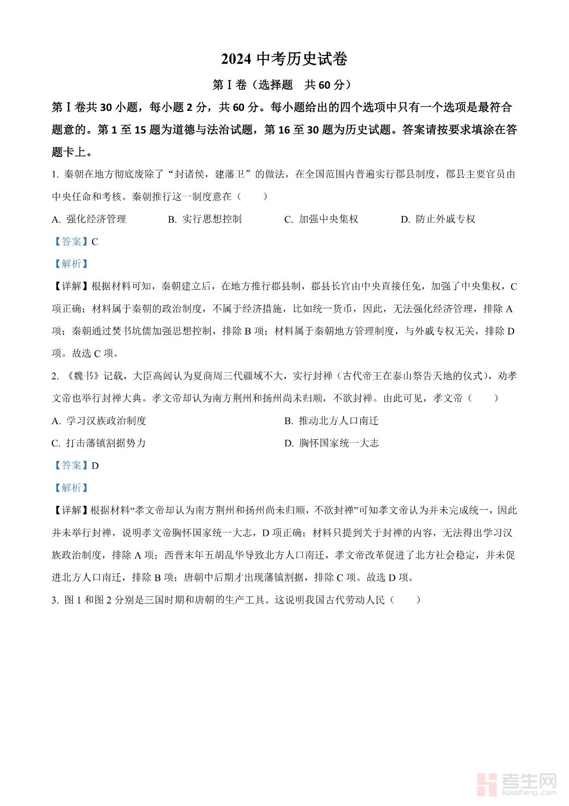 2024年贵州省黔东南州中考历史真题(原卷版)