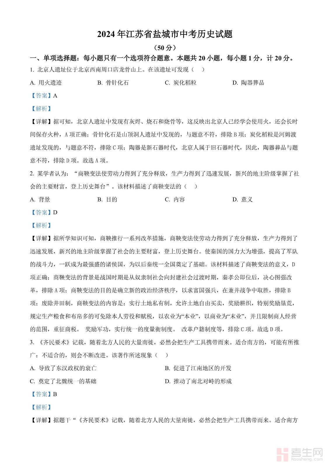 2024年贵州省黔东南州中考历史真题(原卷版)