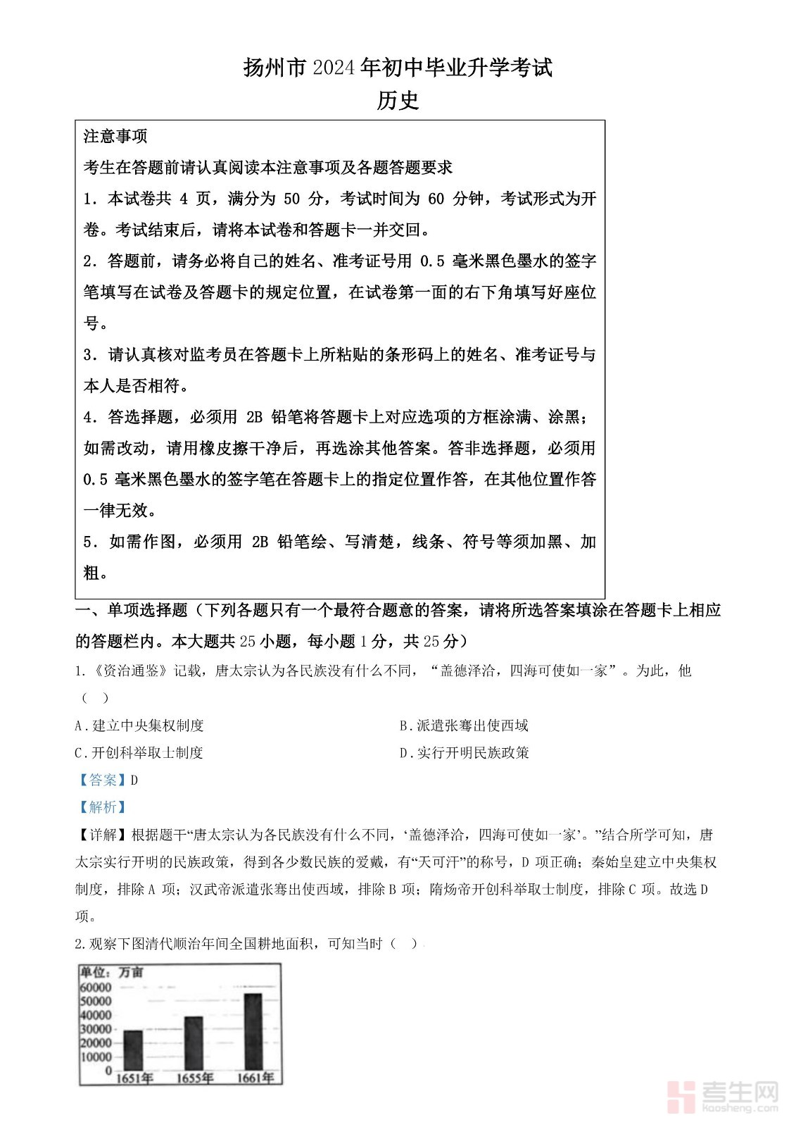 2024年江苏省扬州市中考历史试题(解析版)