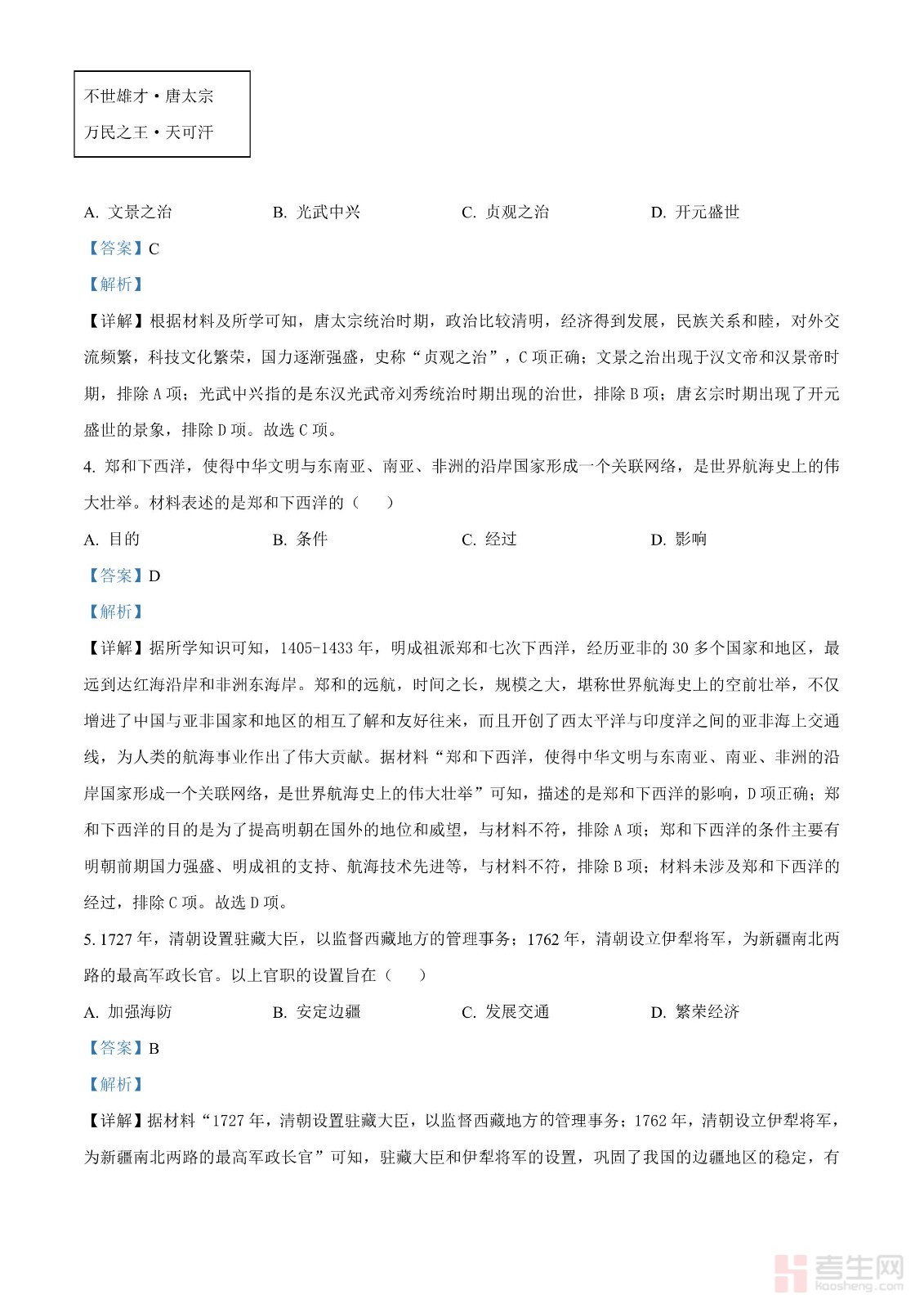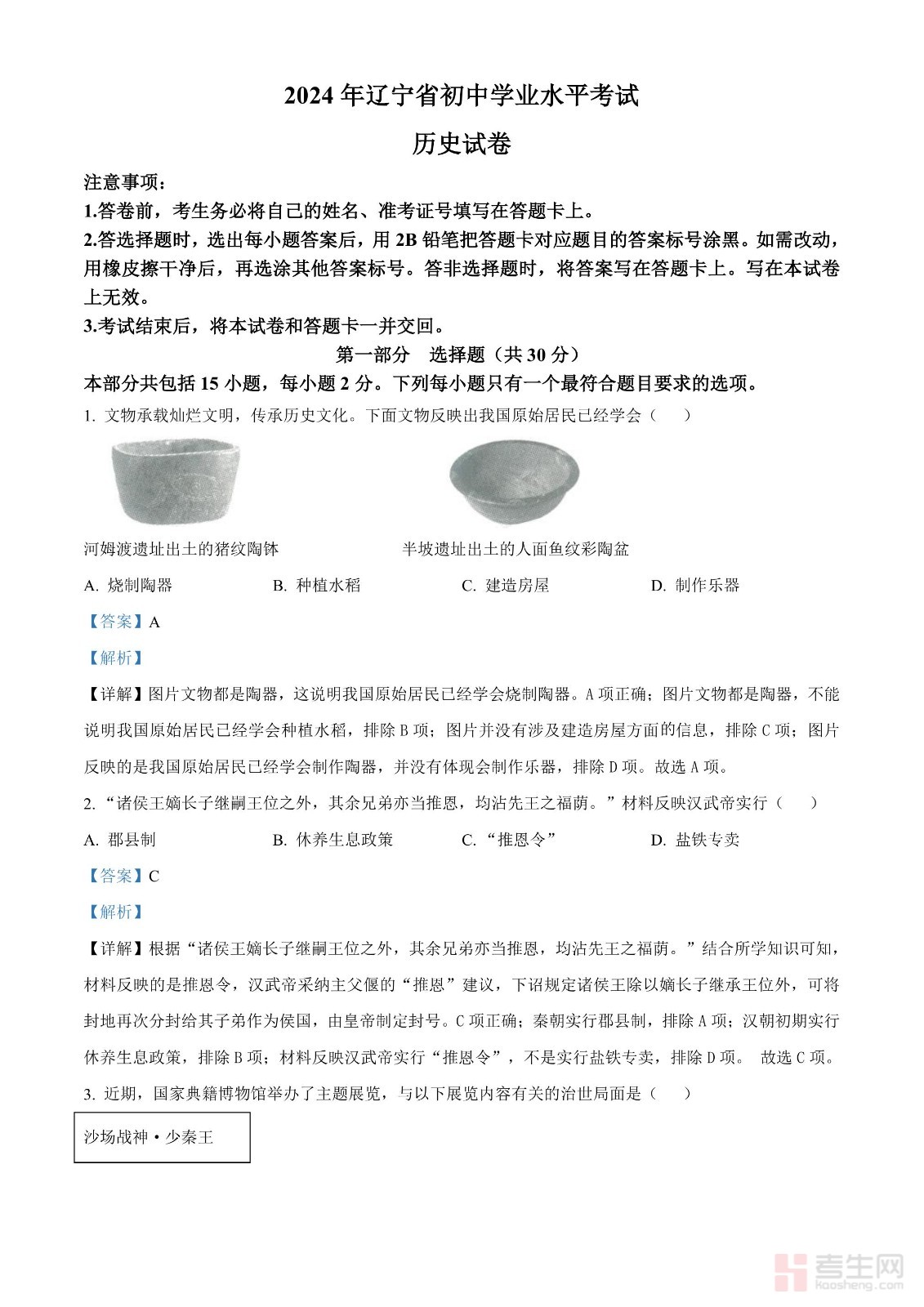 2024年贵州省黔东南州中考历史真题(原卷版)