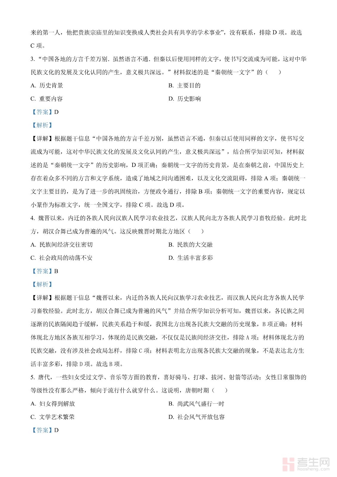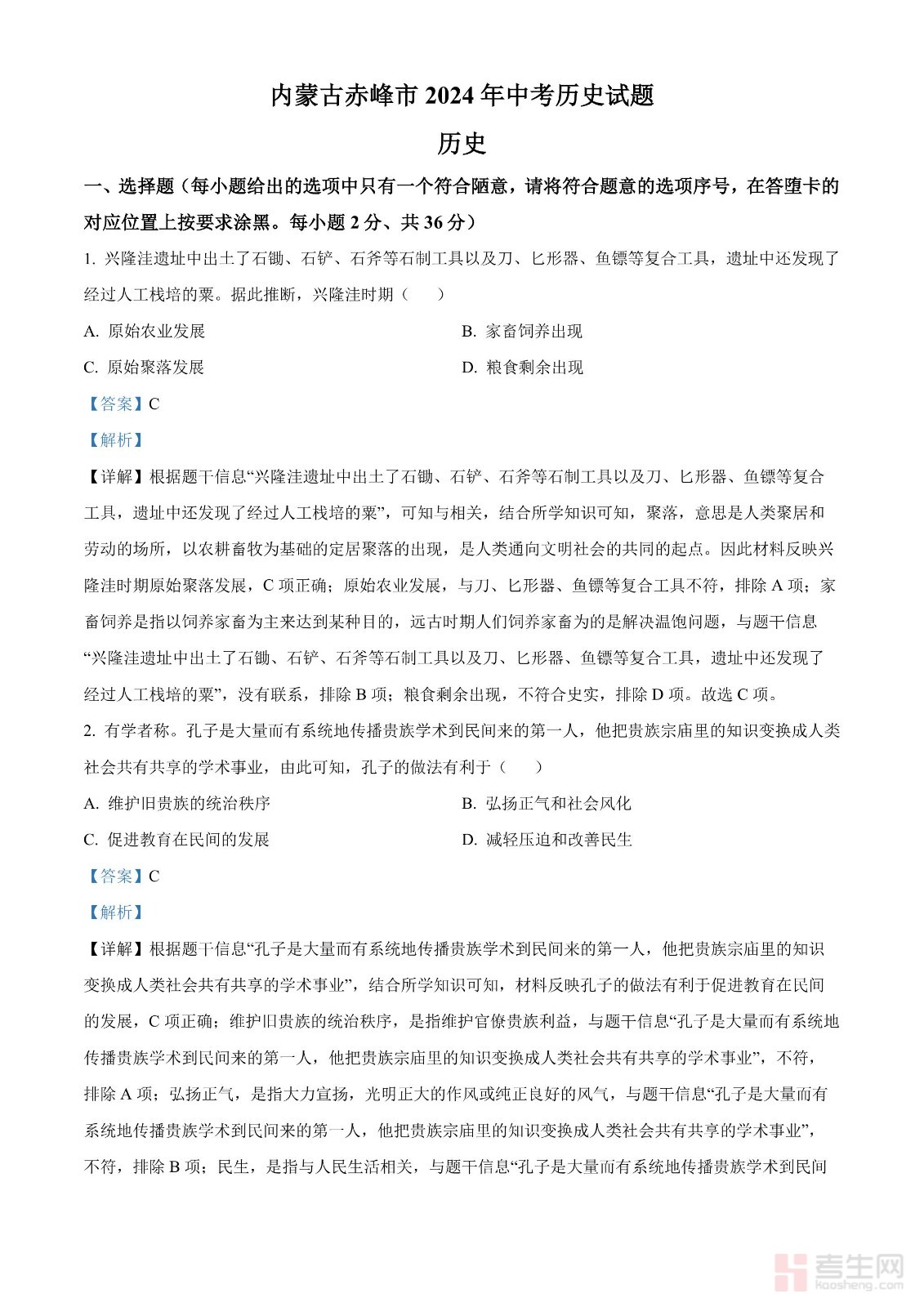 2024年内蒙古自治区赤峰市中考历史真题(解析版)