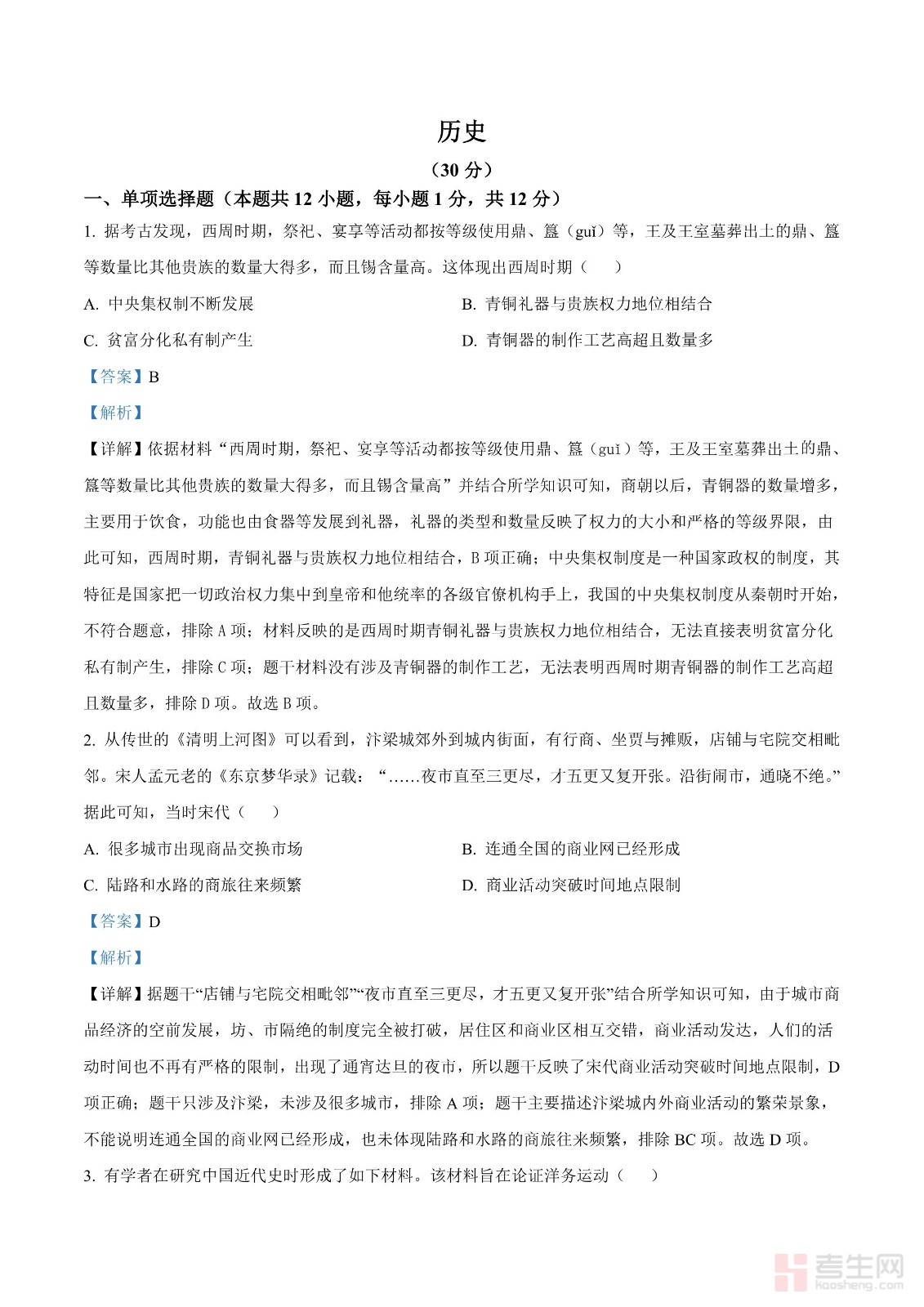 2024年贵州省黔东南州中考历史真题(原卷版)
