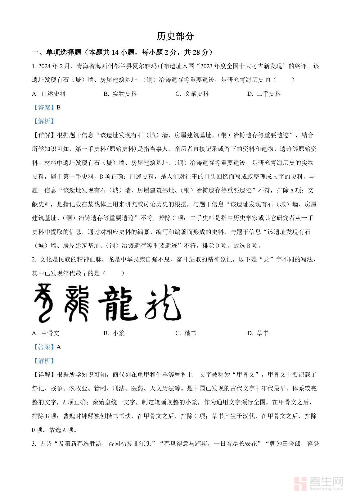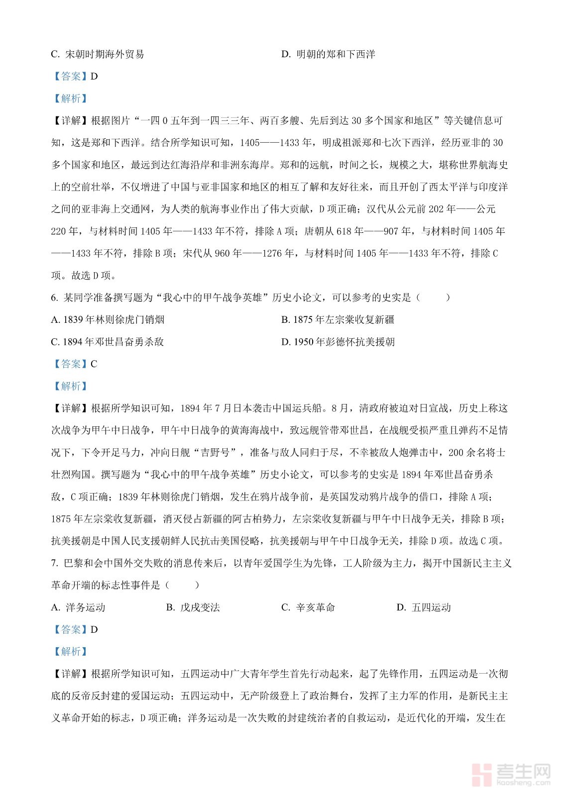 2024年贵州省黔东南州中考历史真题(原卷版)