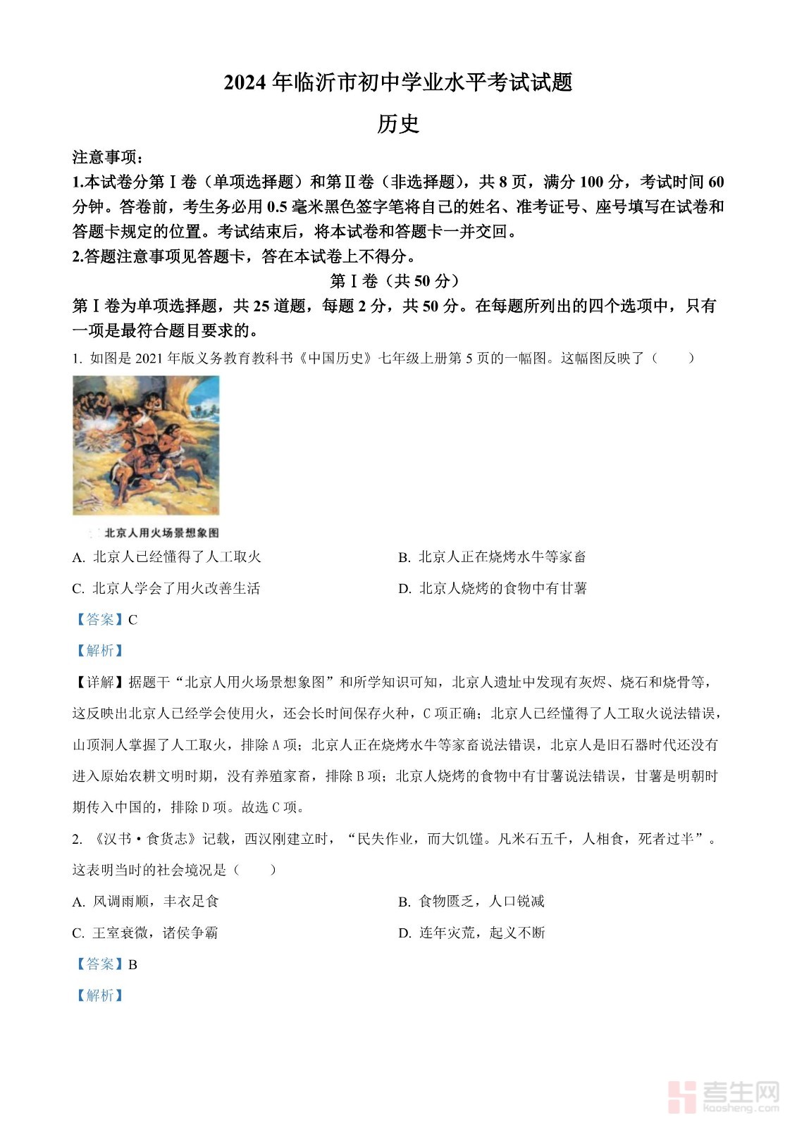 2024年贵州省黔东南州中考历史真题(原卷版)