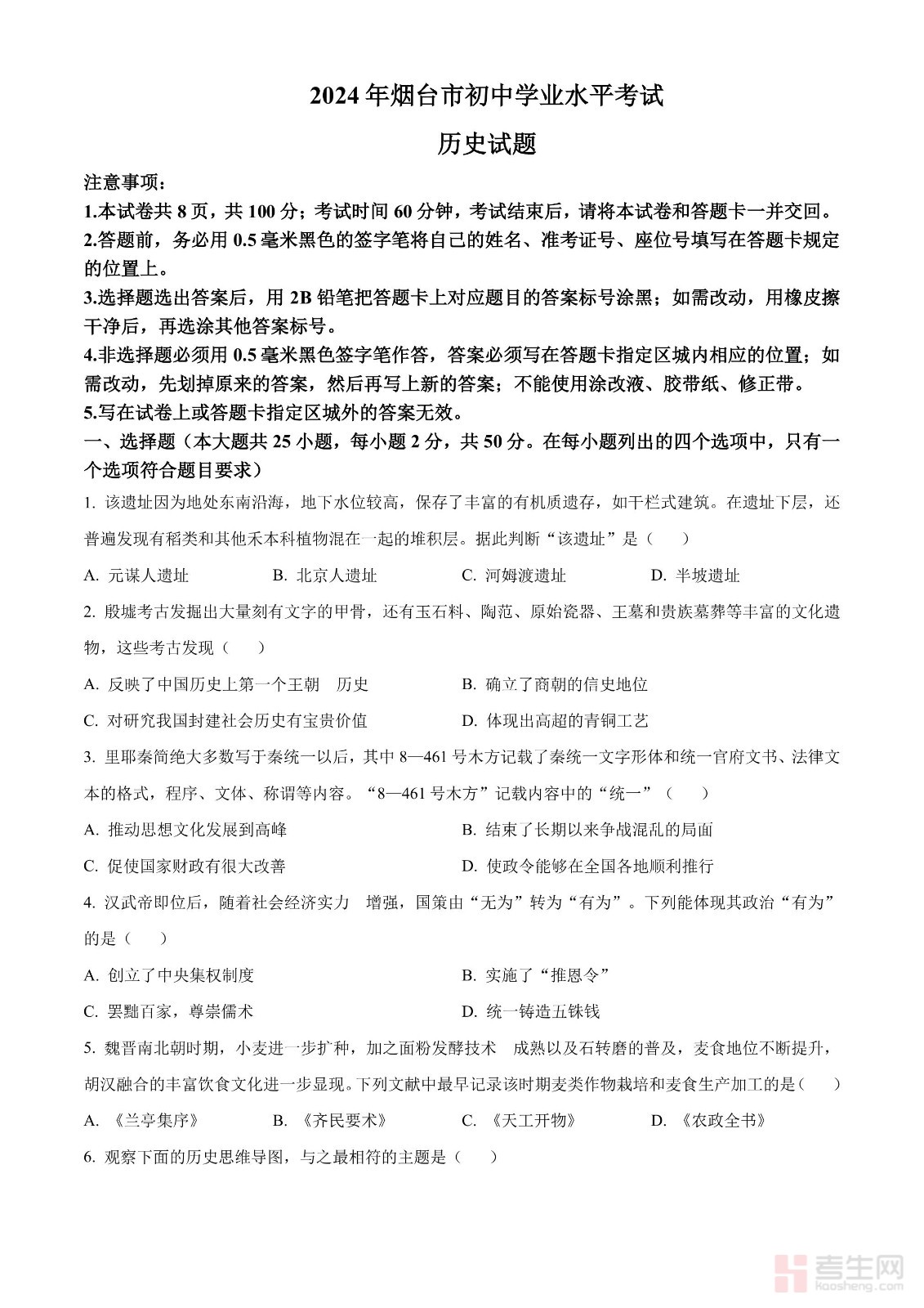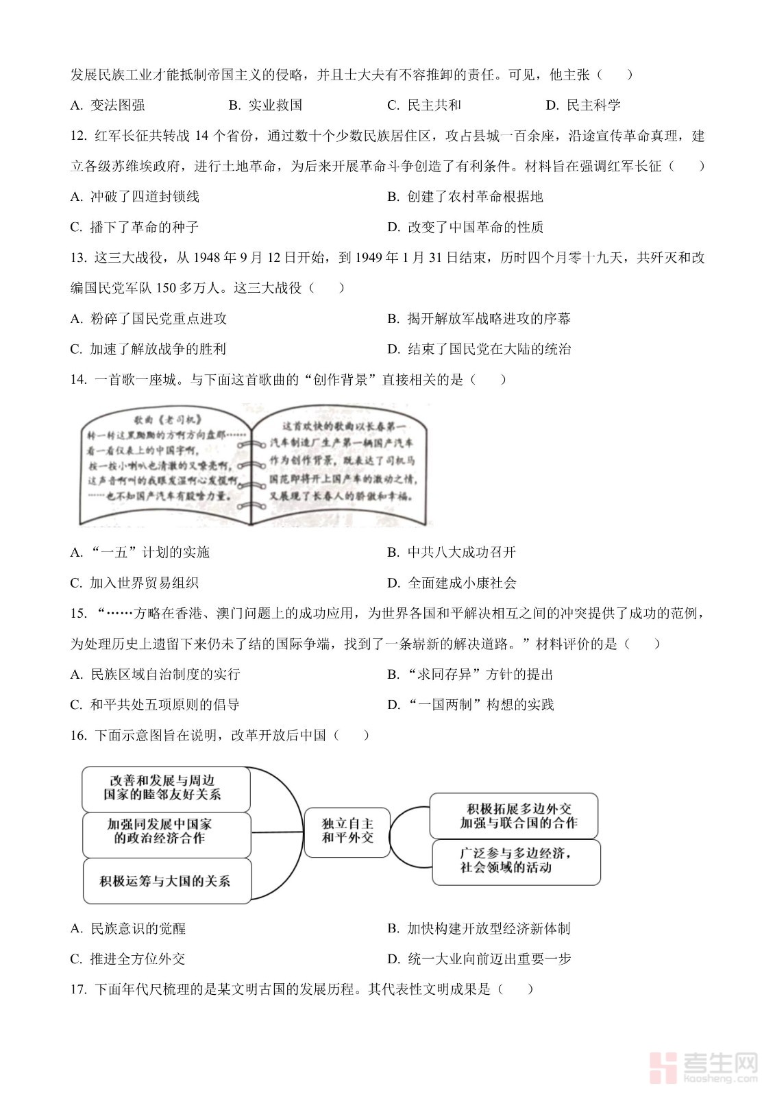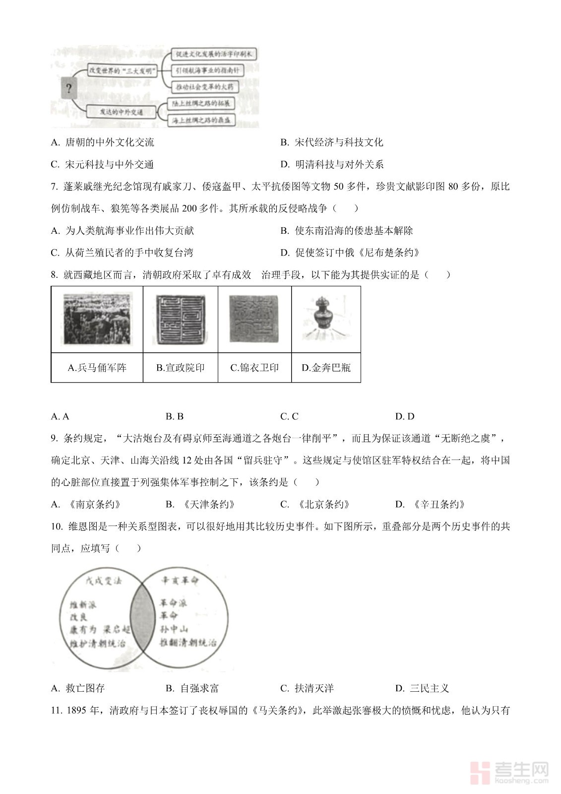 2024年贵州省黔东南州中考历史真题(原卷版)