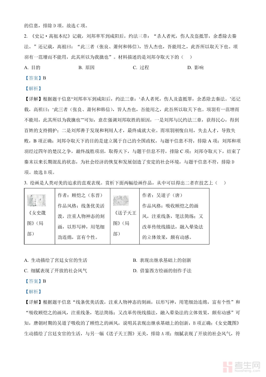 2024年贵州省黔东南州中考历史真题(原卷版)