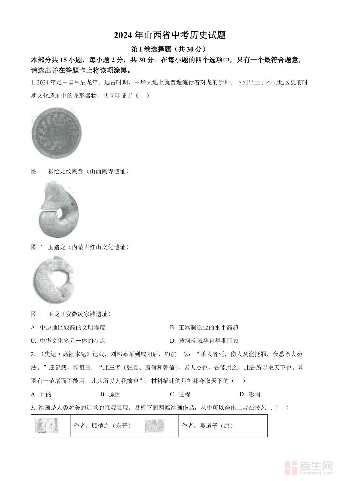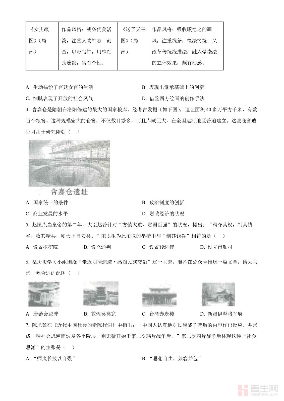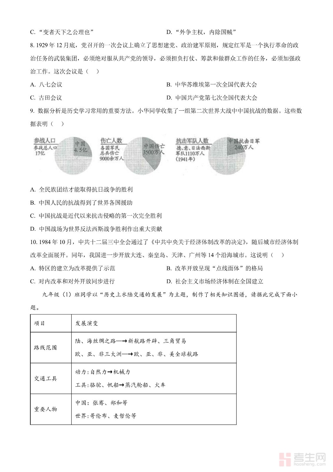 2024年贵州省黔东南州中考历史真题(原卷版)