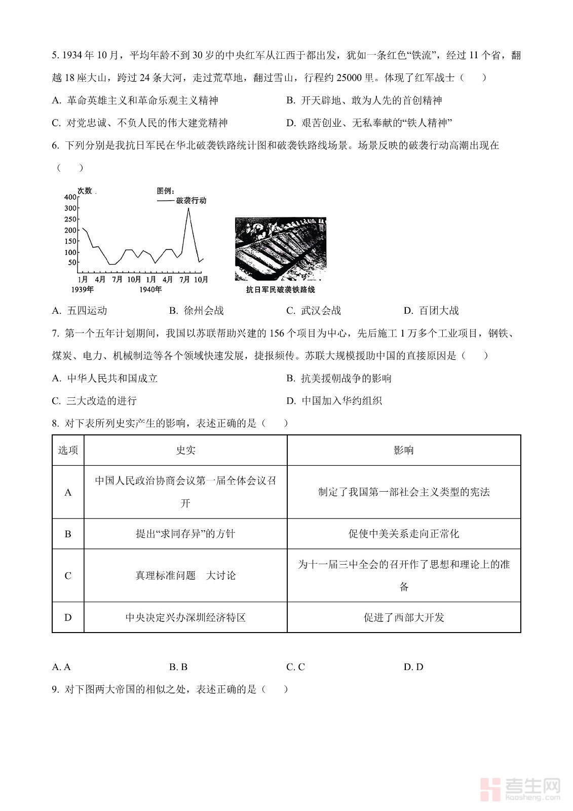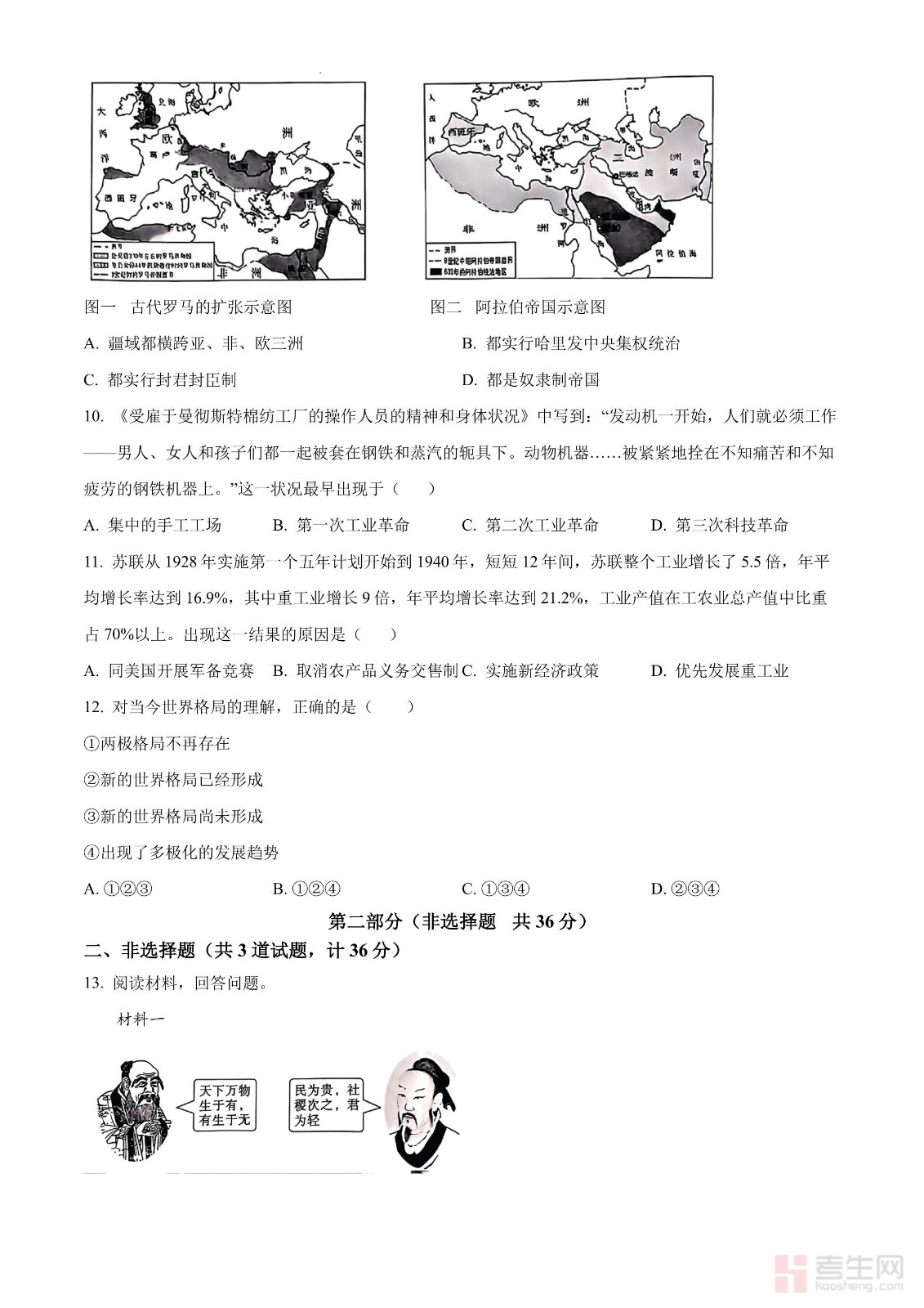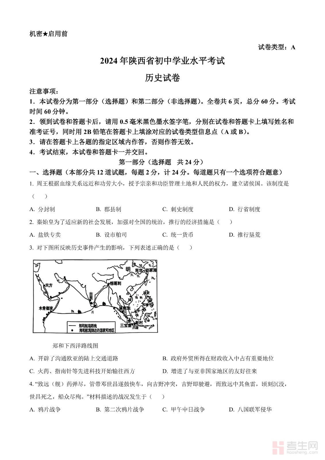 2024年陕西省中考历史真题(A卷)(原卷版)