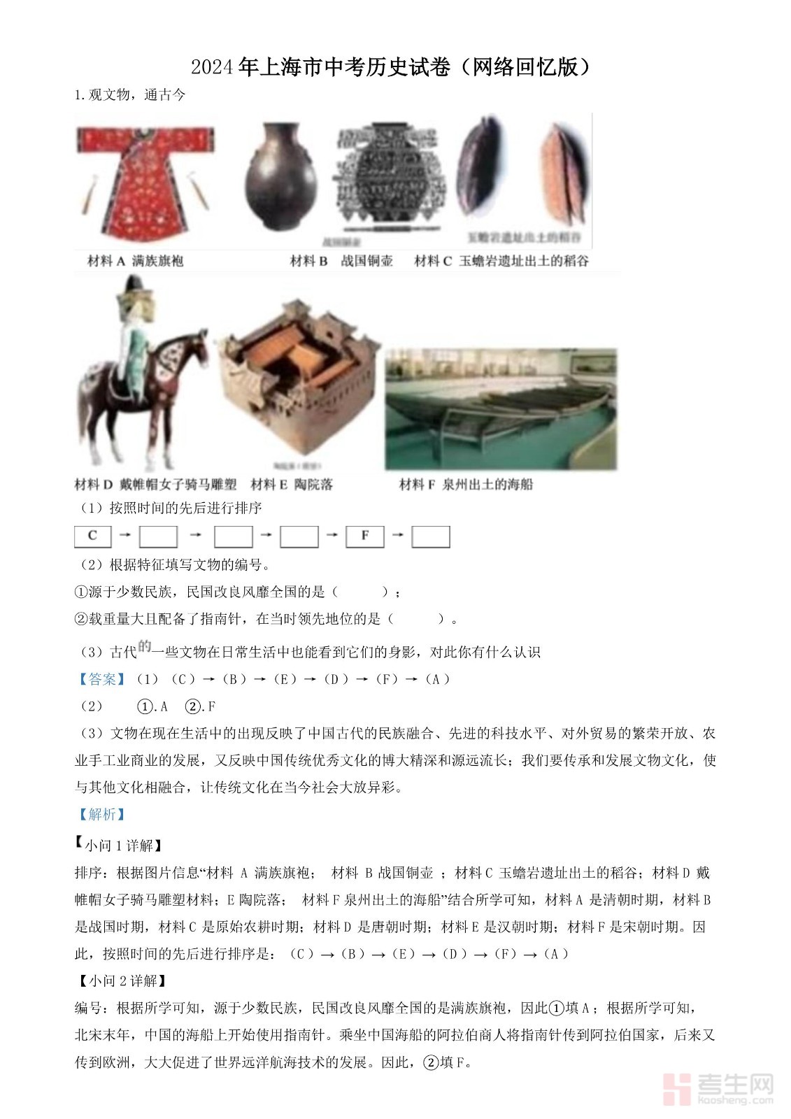 2024年贵州省黔东南州中考历史真题(原卷版)