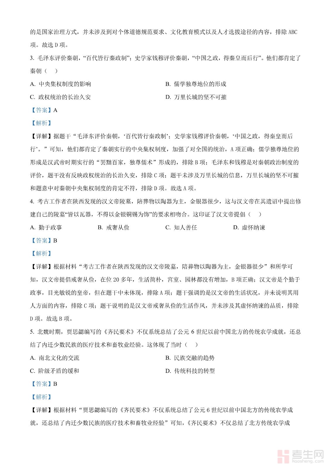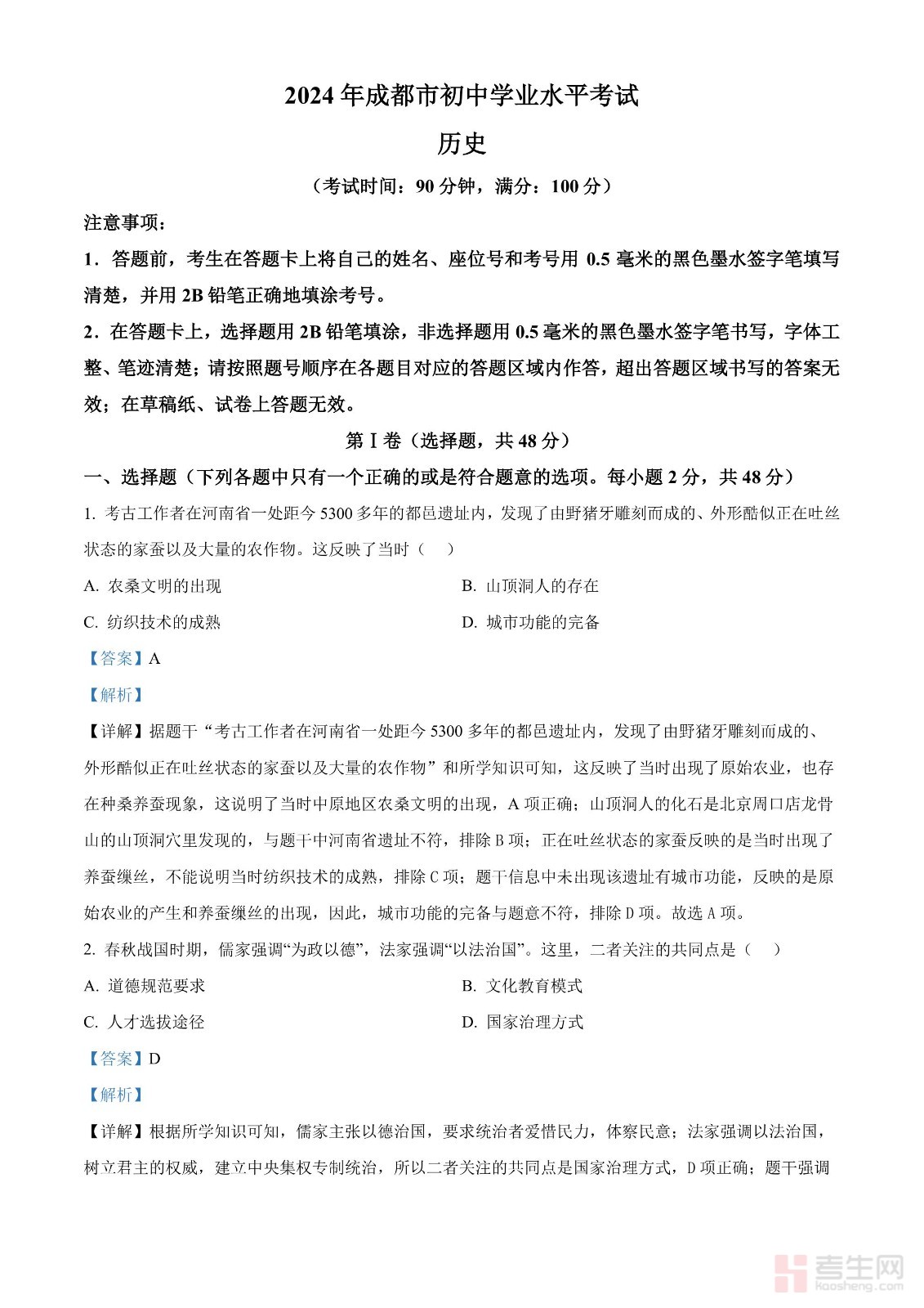 2024年贵州省黔东南州中考历史真题(原卷版)