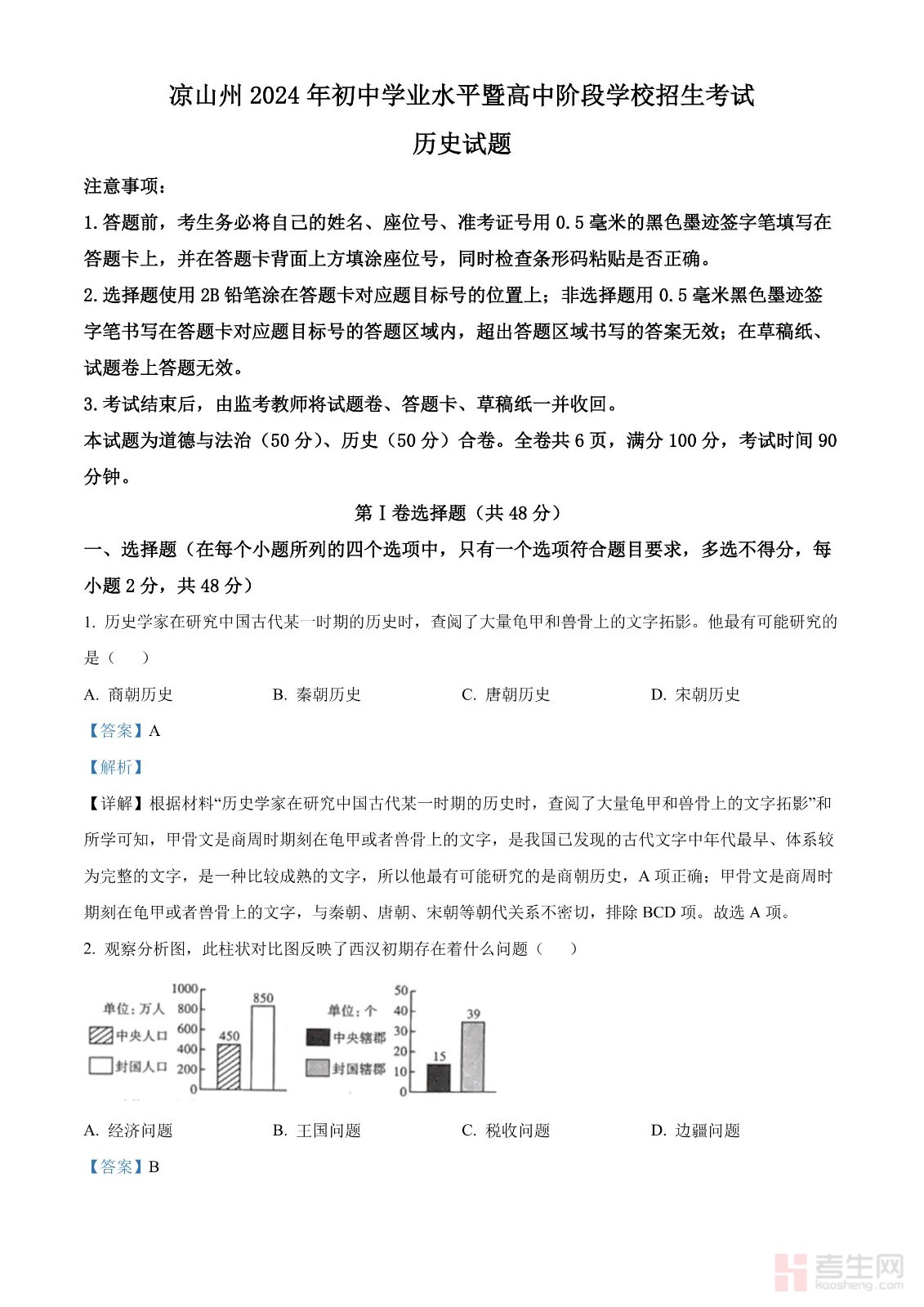 2024年四川省凉山州中考历史真题(解析版)