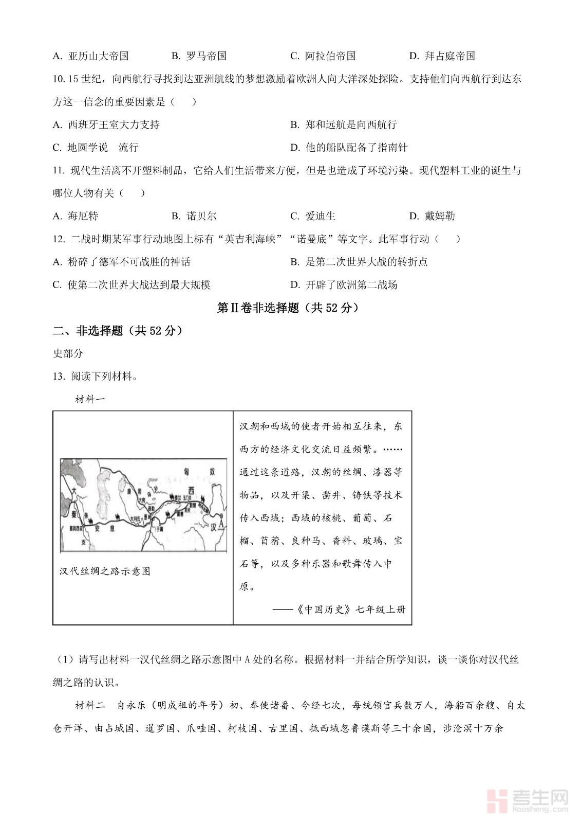 2024年中考历史真题