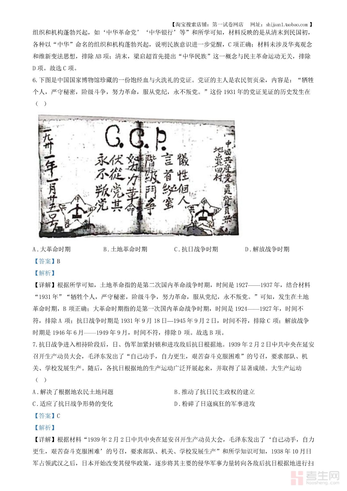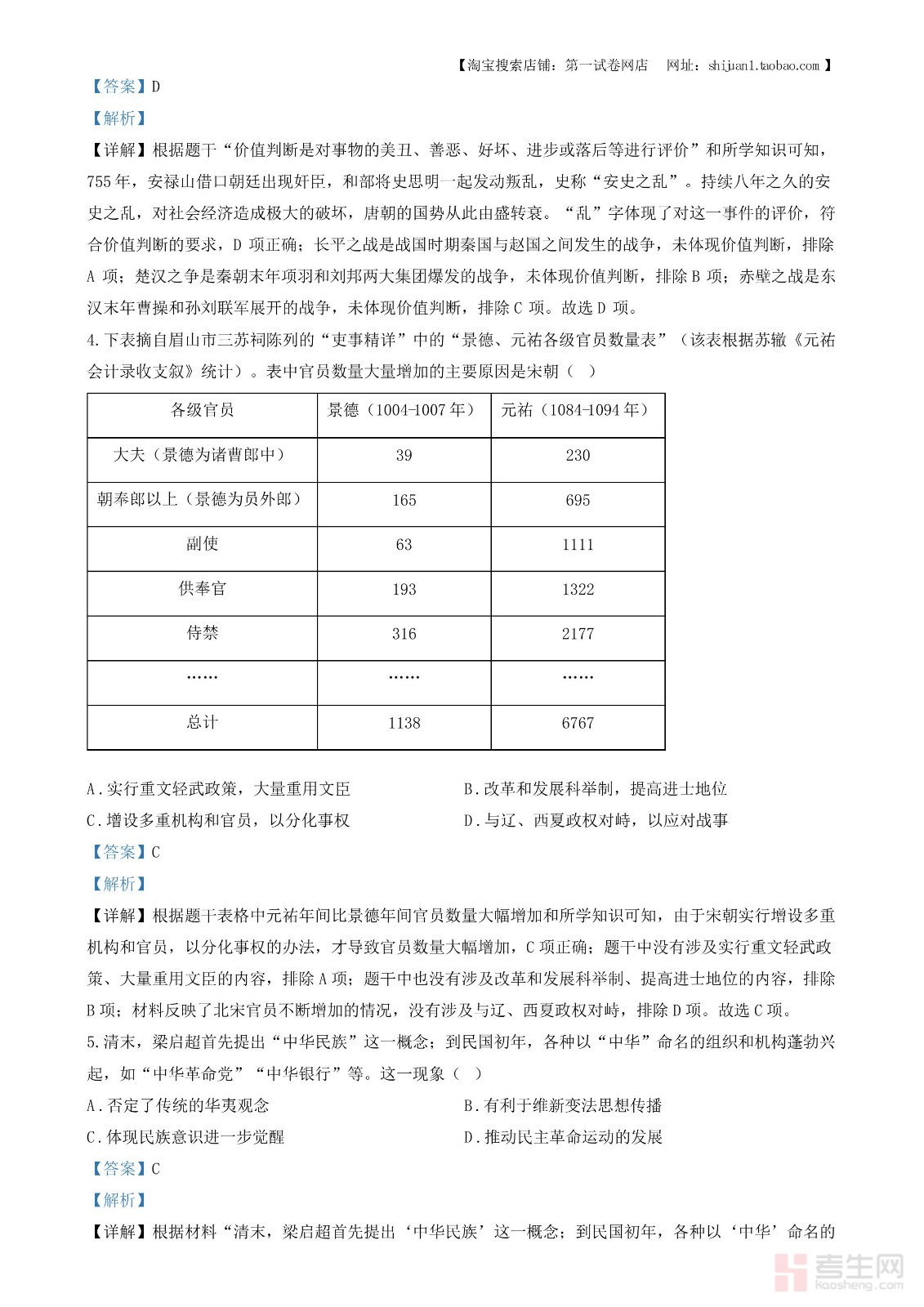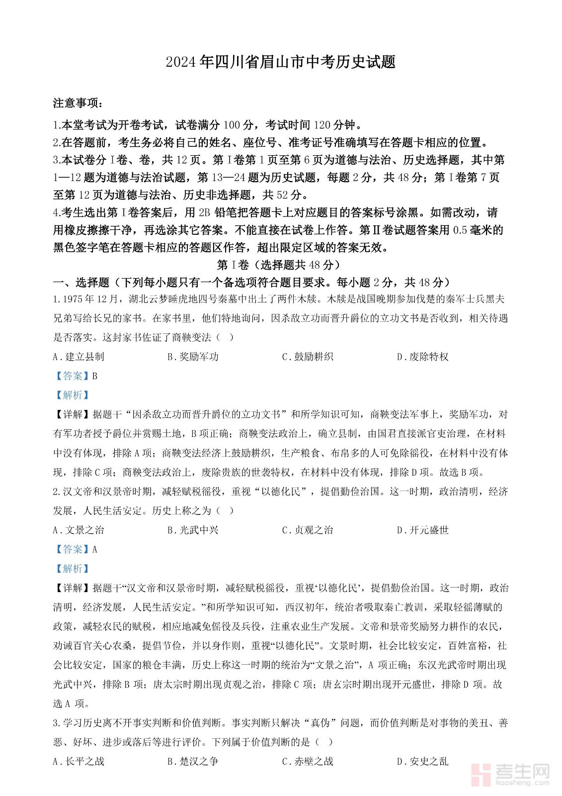 2024年四川省眉山市中考文科综合试题-初中历史(解析版)