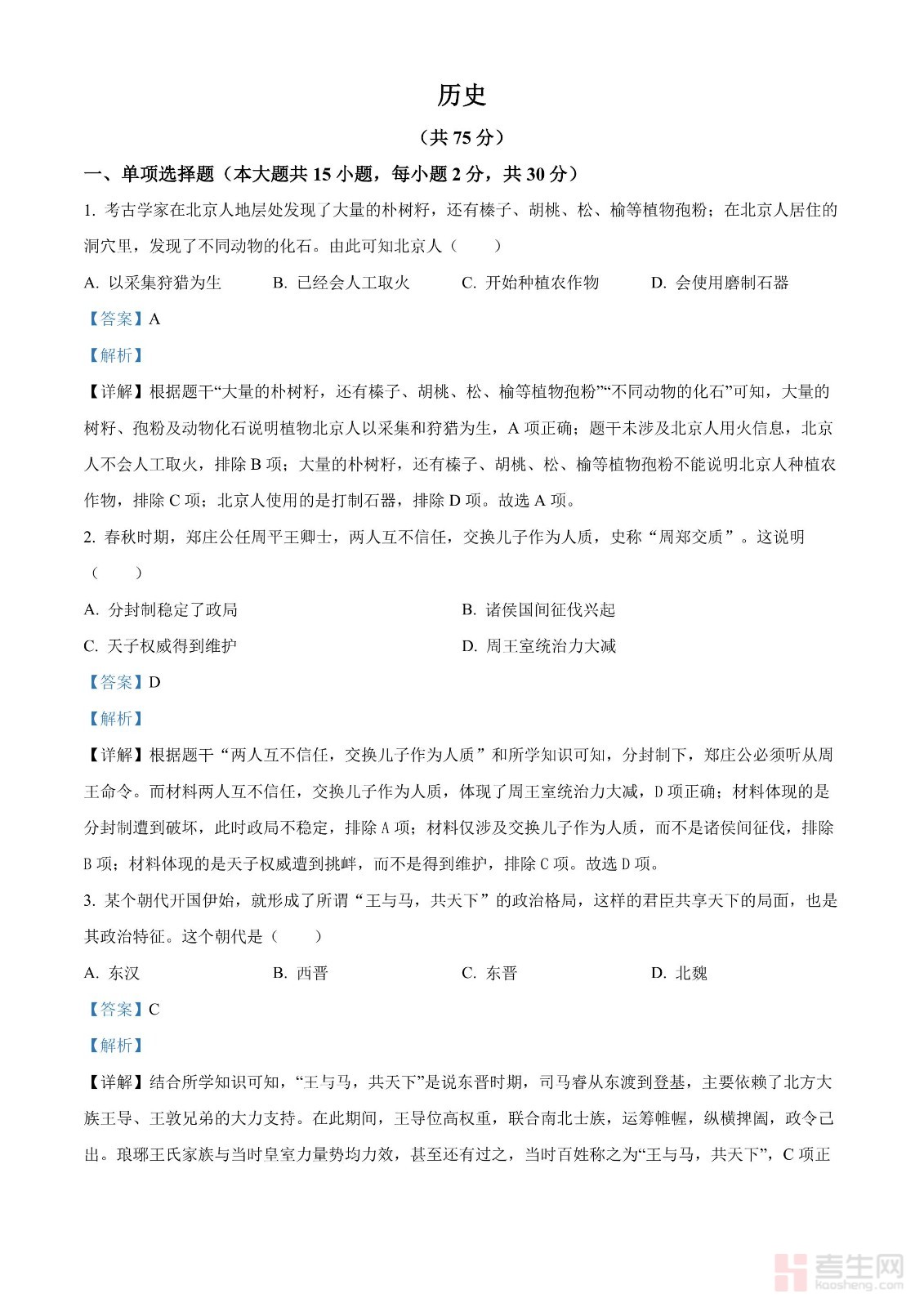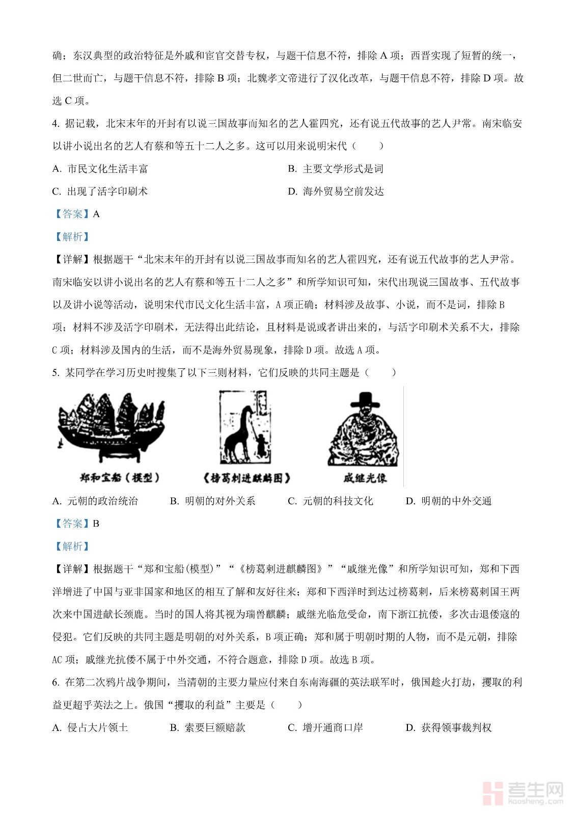 2024年贵州省黔东南州中考历史真题(原卷版)