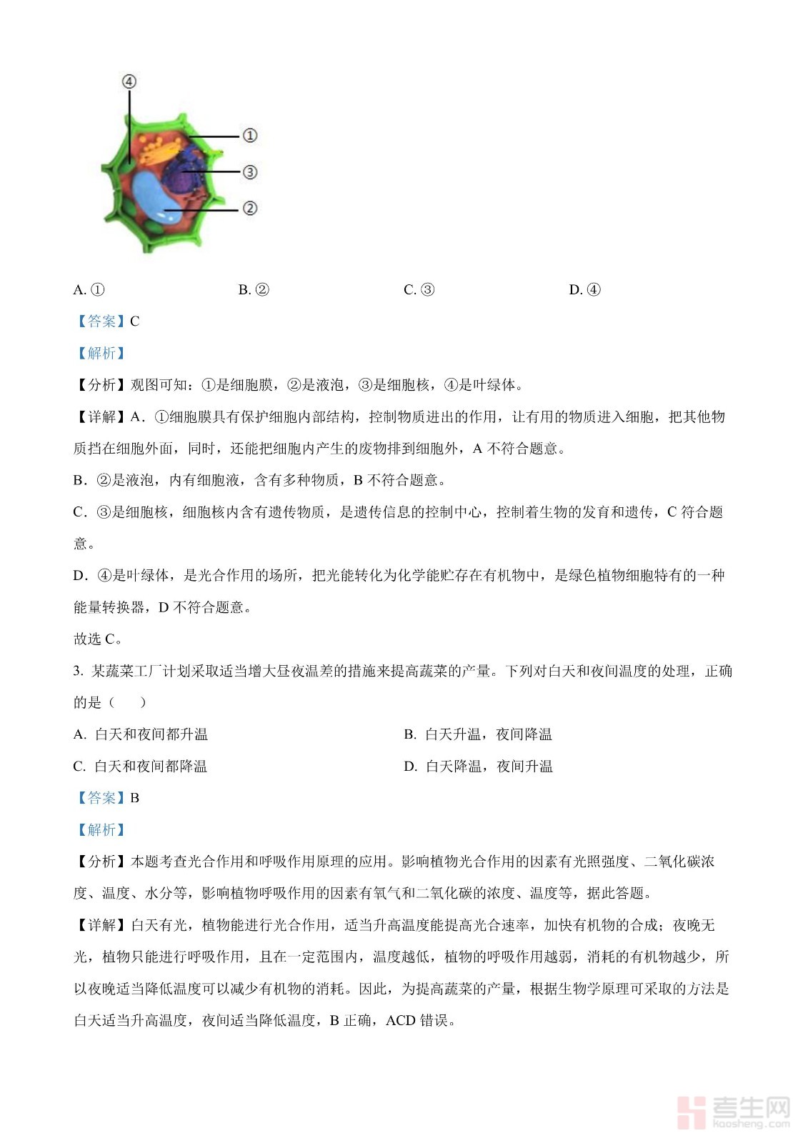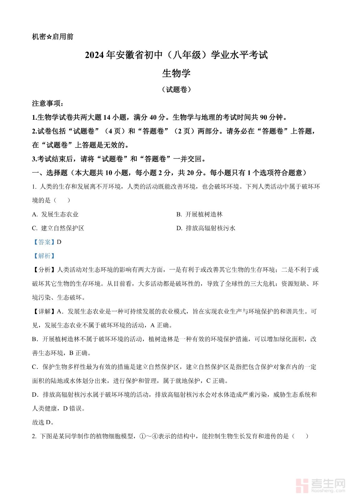 2024年中考生物真题