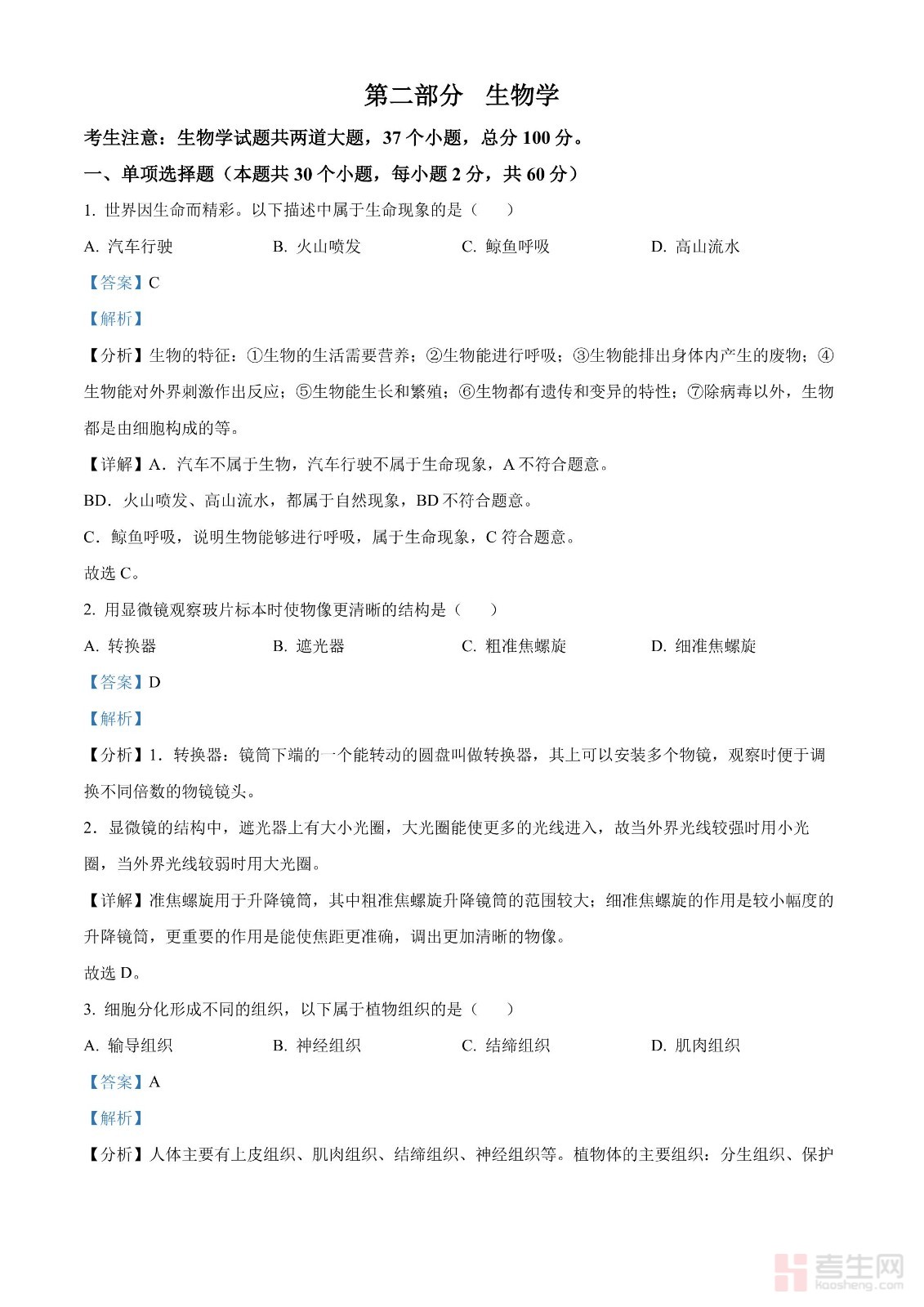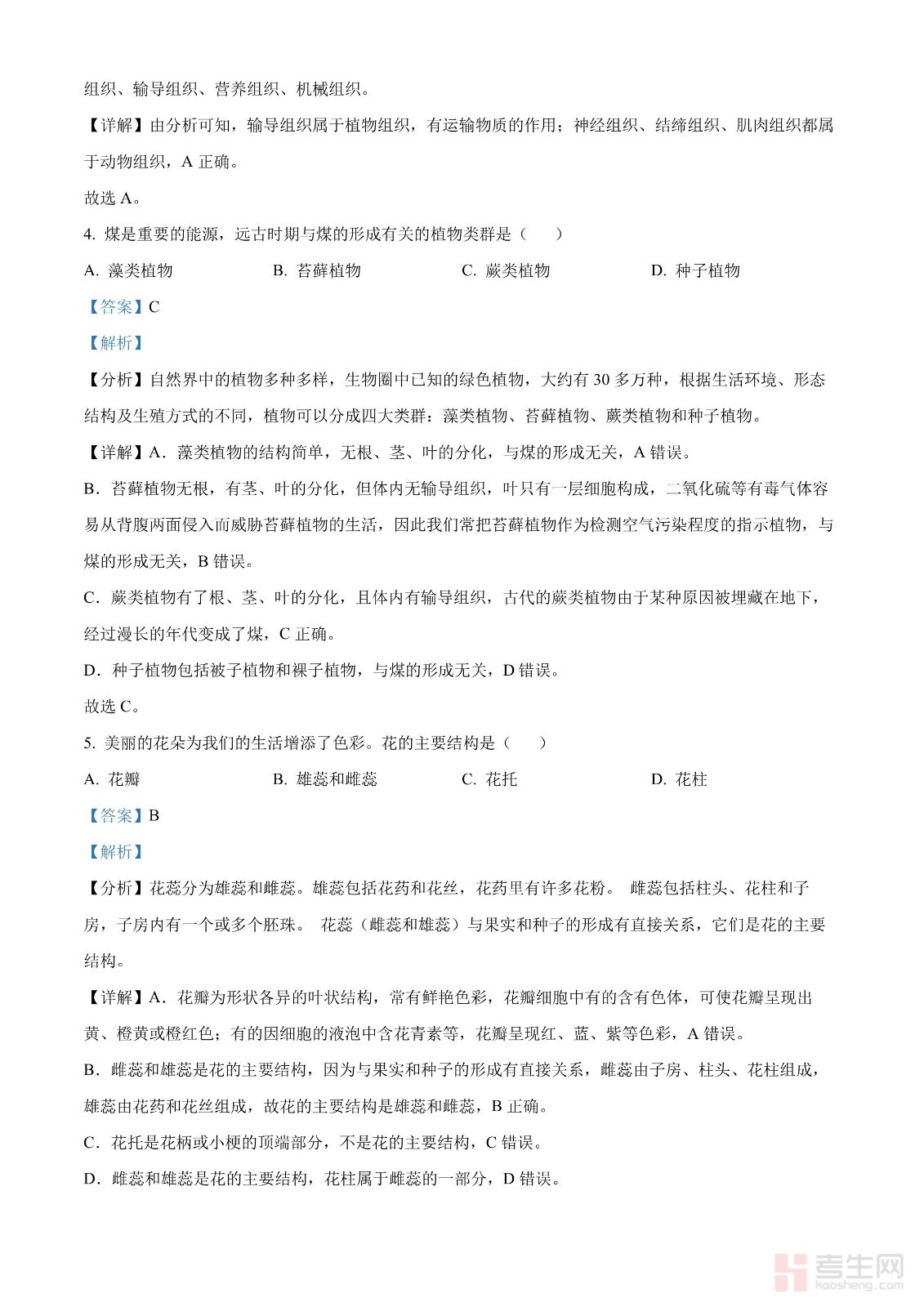 2024年黑龙江省绥化市中考生物真题(解析版)