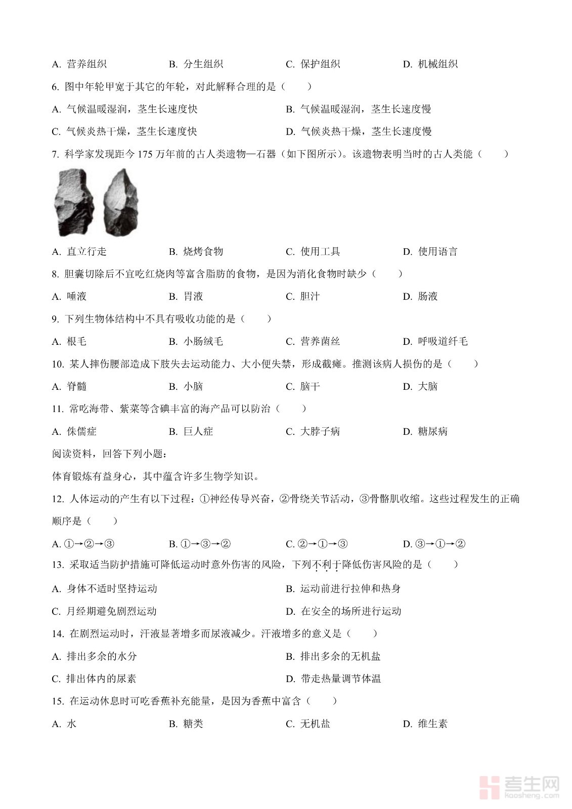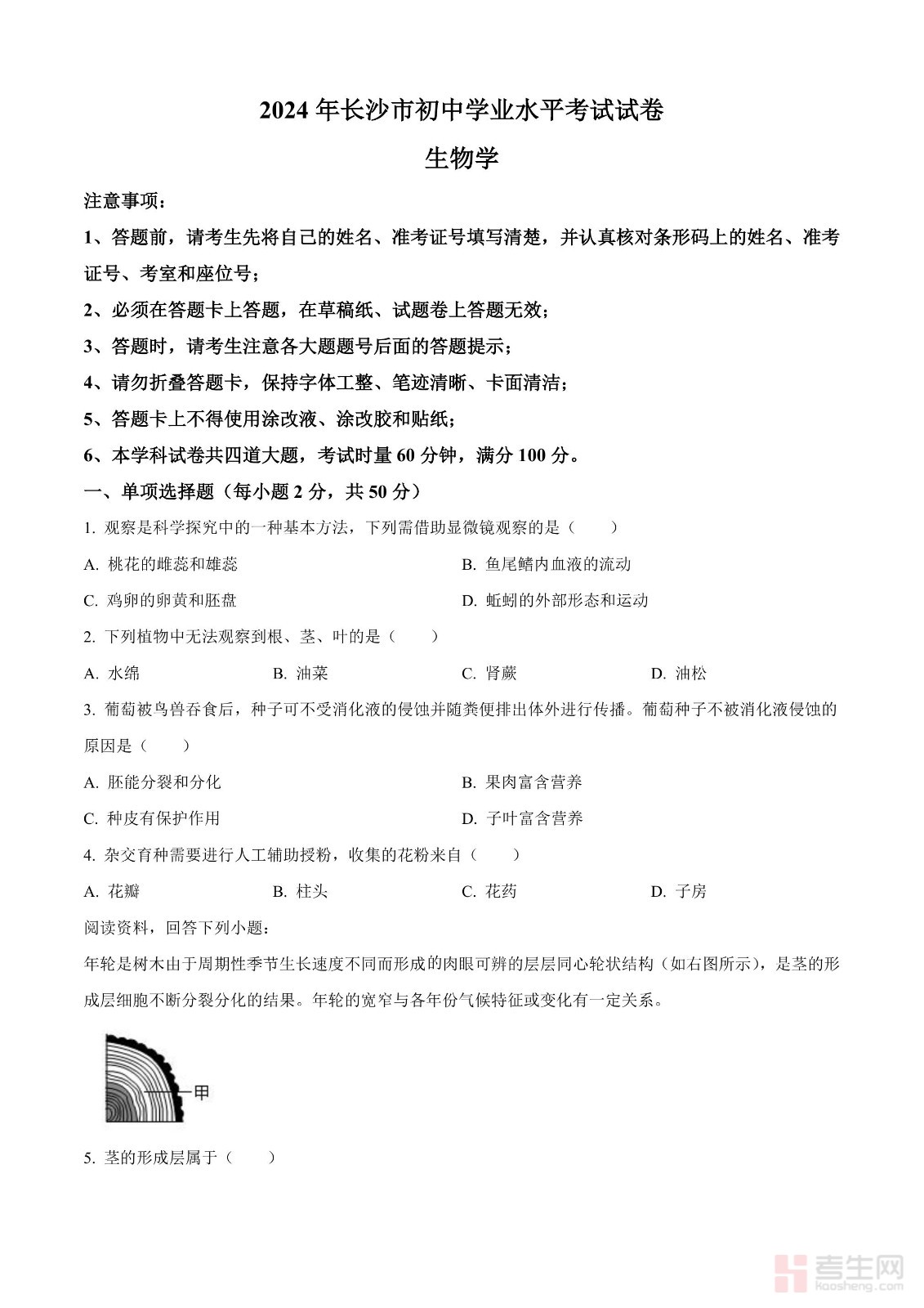 2024年中考生物真题