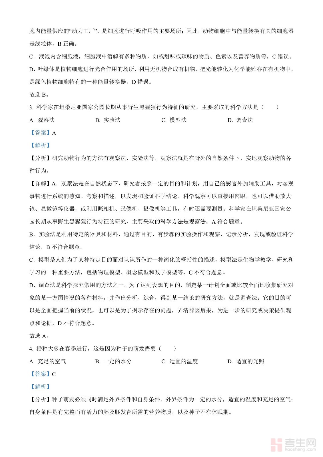 2024年中考生物真题