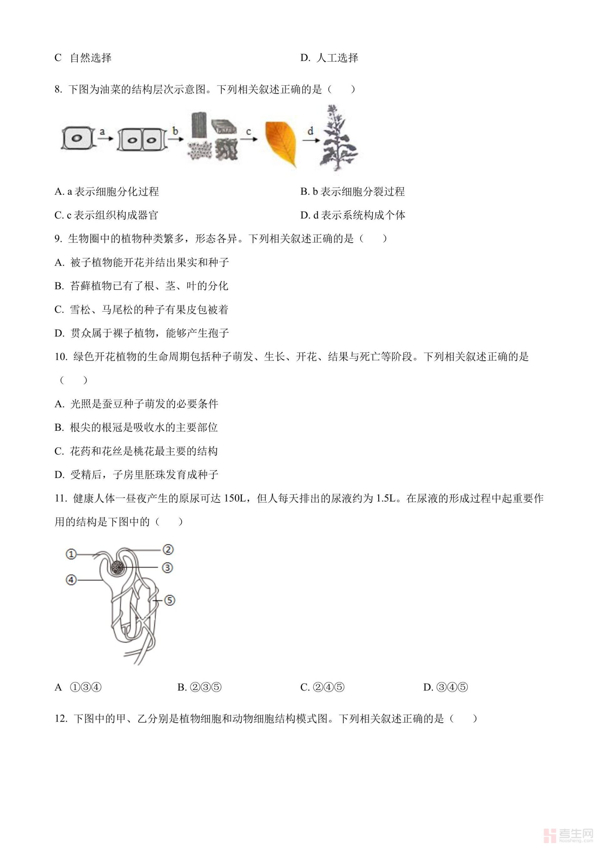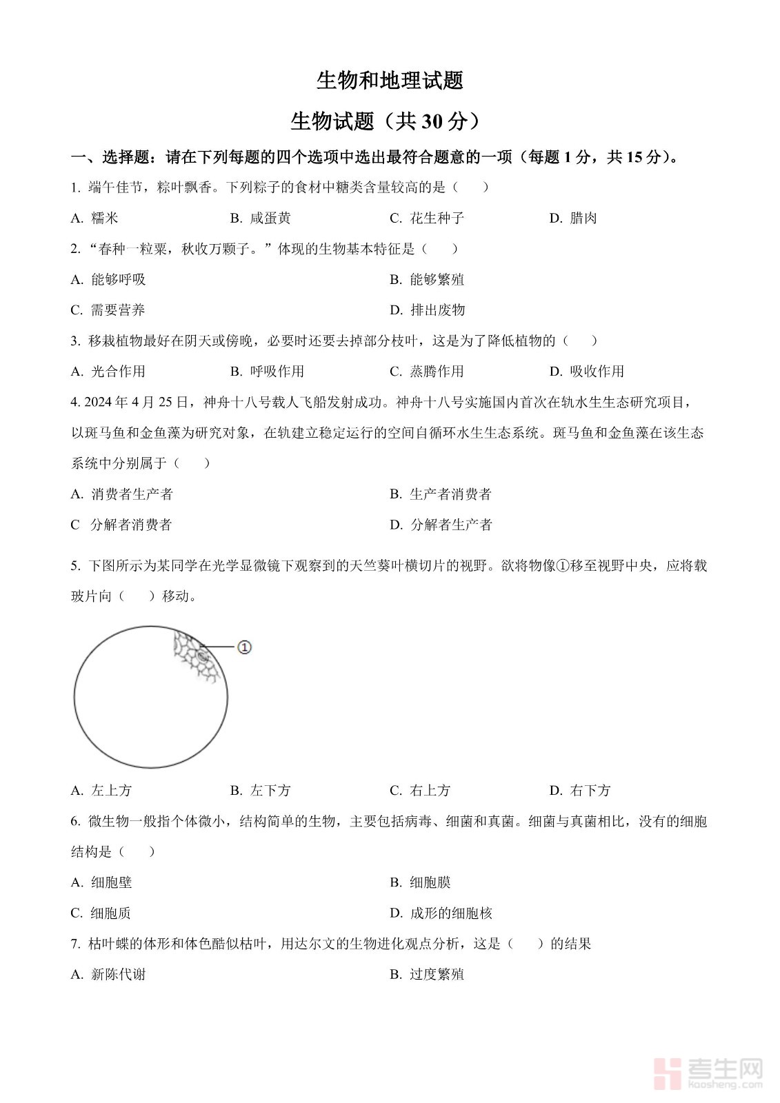 2024年中考生物真题