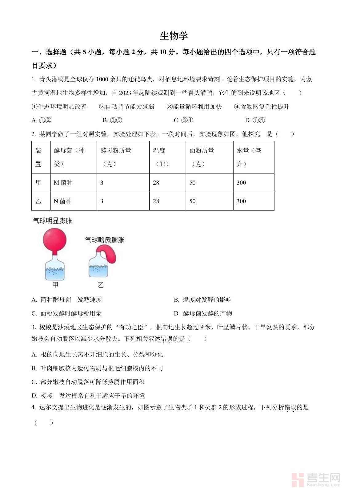 2024年中考生物真题