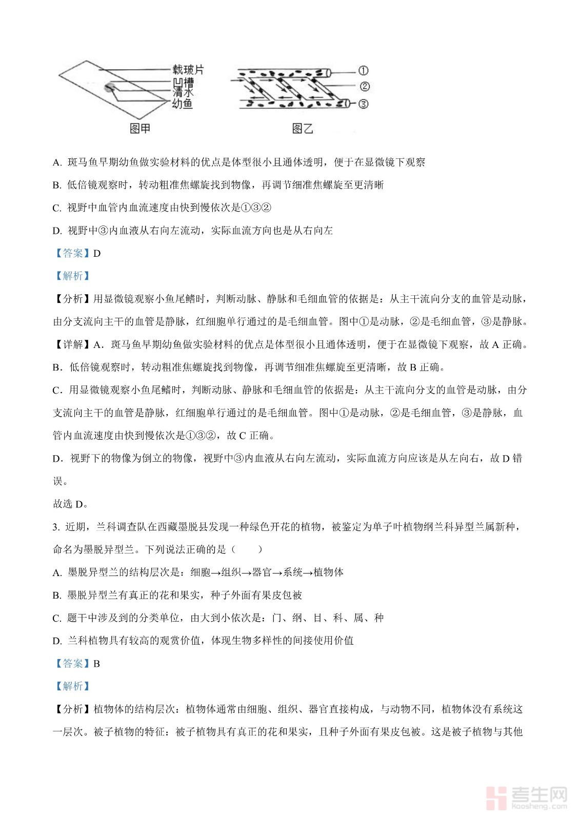 2024年中考生物真题