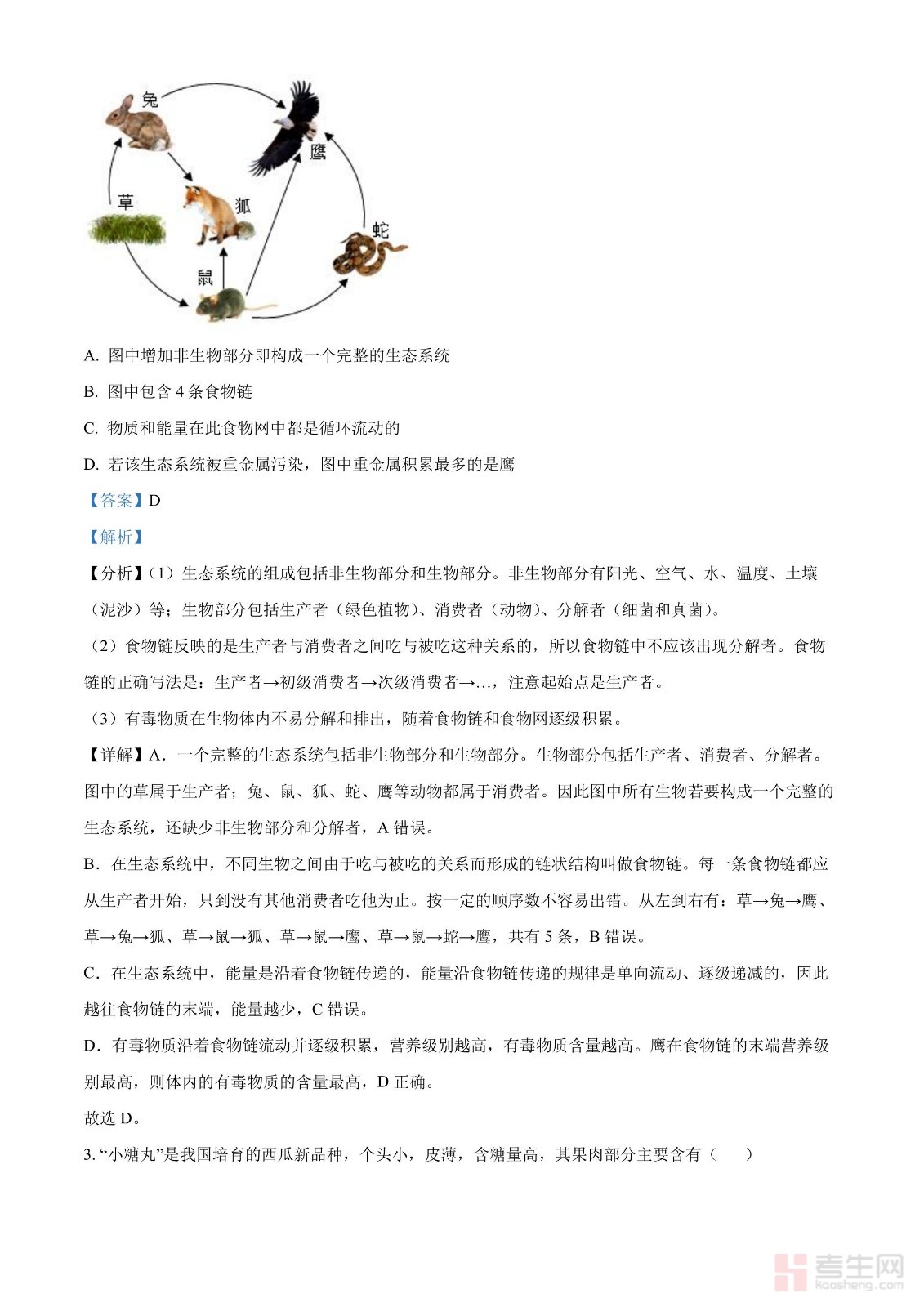 2024年吉林省长春市中考生物真题(原卷版)