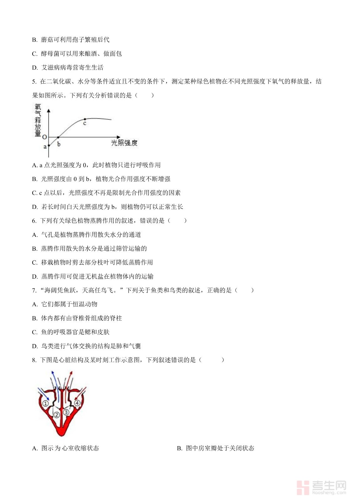2024年四川省成都市中考生物试题(原卷版)