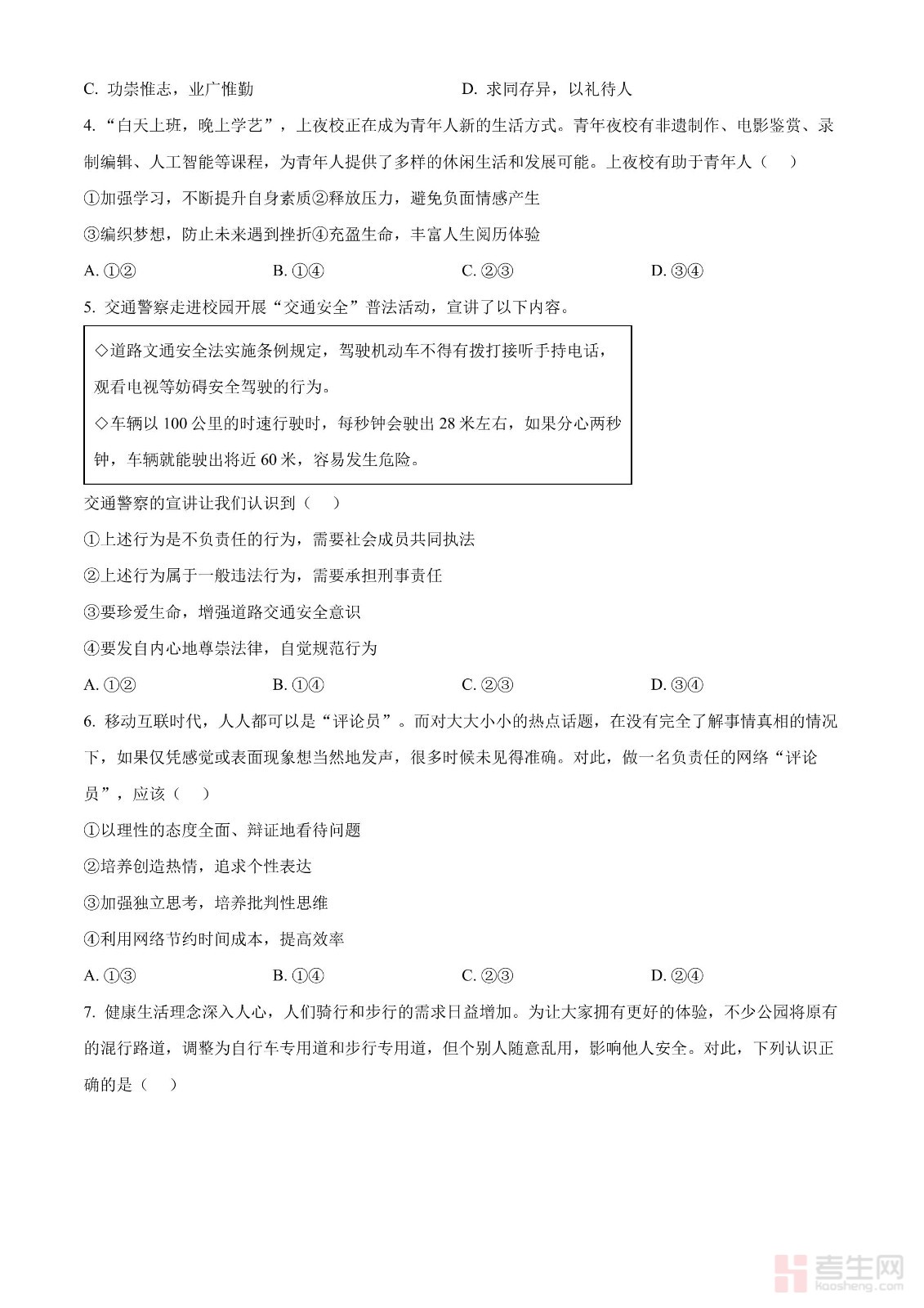 2024年宁夏回族自治区中考道德与法治真题(原卷版)